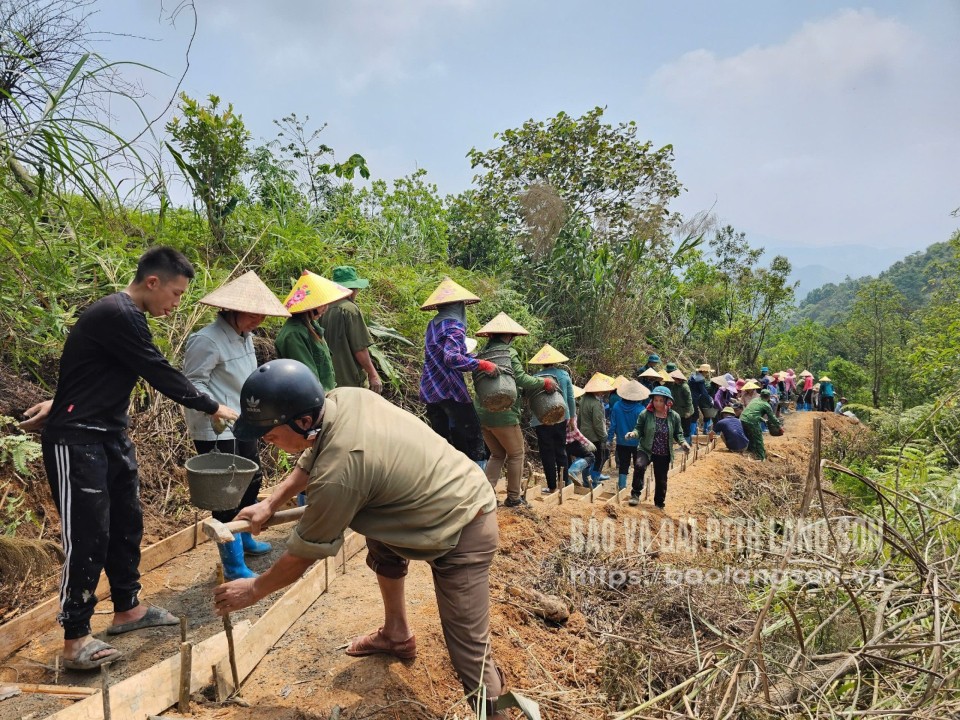 Người dân chung sức xây dựng đường kiểm tra cột mốc biên giới tại xã Quốc Khánh