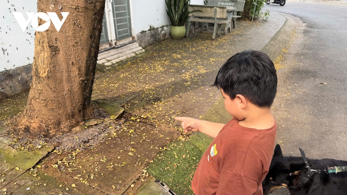 Theo ghi nhận của phóng viên VOV, tại khu dân cư nằm trên đường Phạm Thị Tân, phường Phú Lợi, TP.HCM hiện vẫn còn nhiều sâu róm xuất bò trên thân cây và tường của nhà dân.
