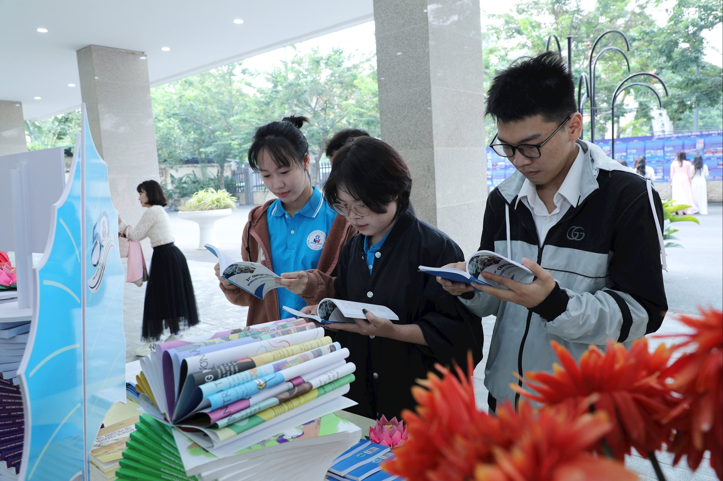 Các bạn sinh viên trường đang tìm hiểu về quá trình hình thành, phát triển của Khoa Ngữ văn