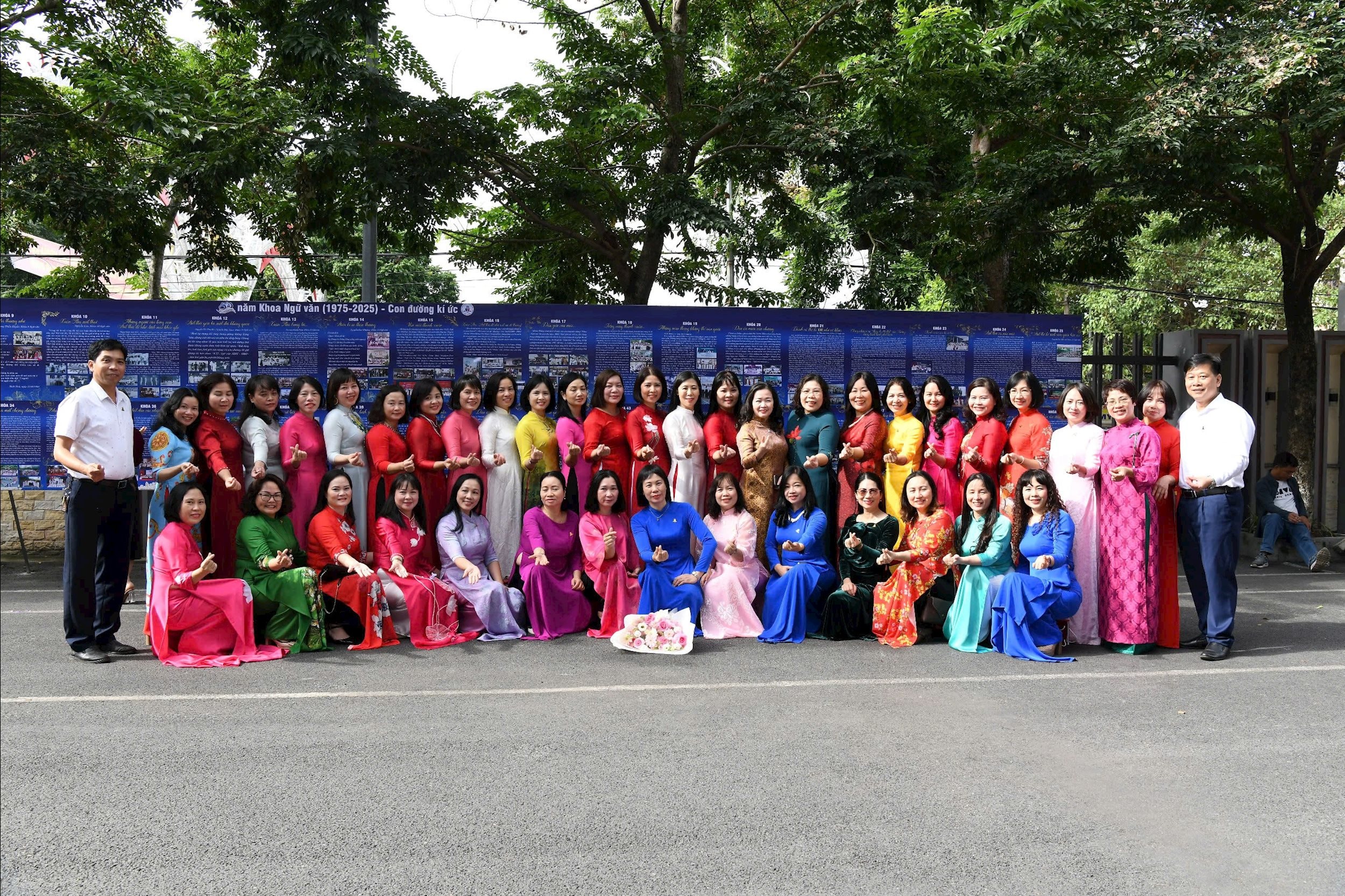 Các đại biểu từng tham gia công tác giảng dạy và học tập tại Khoa Ngữ văn chụp hình lưu niệm