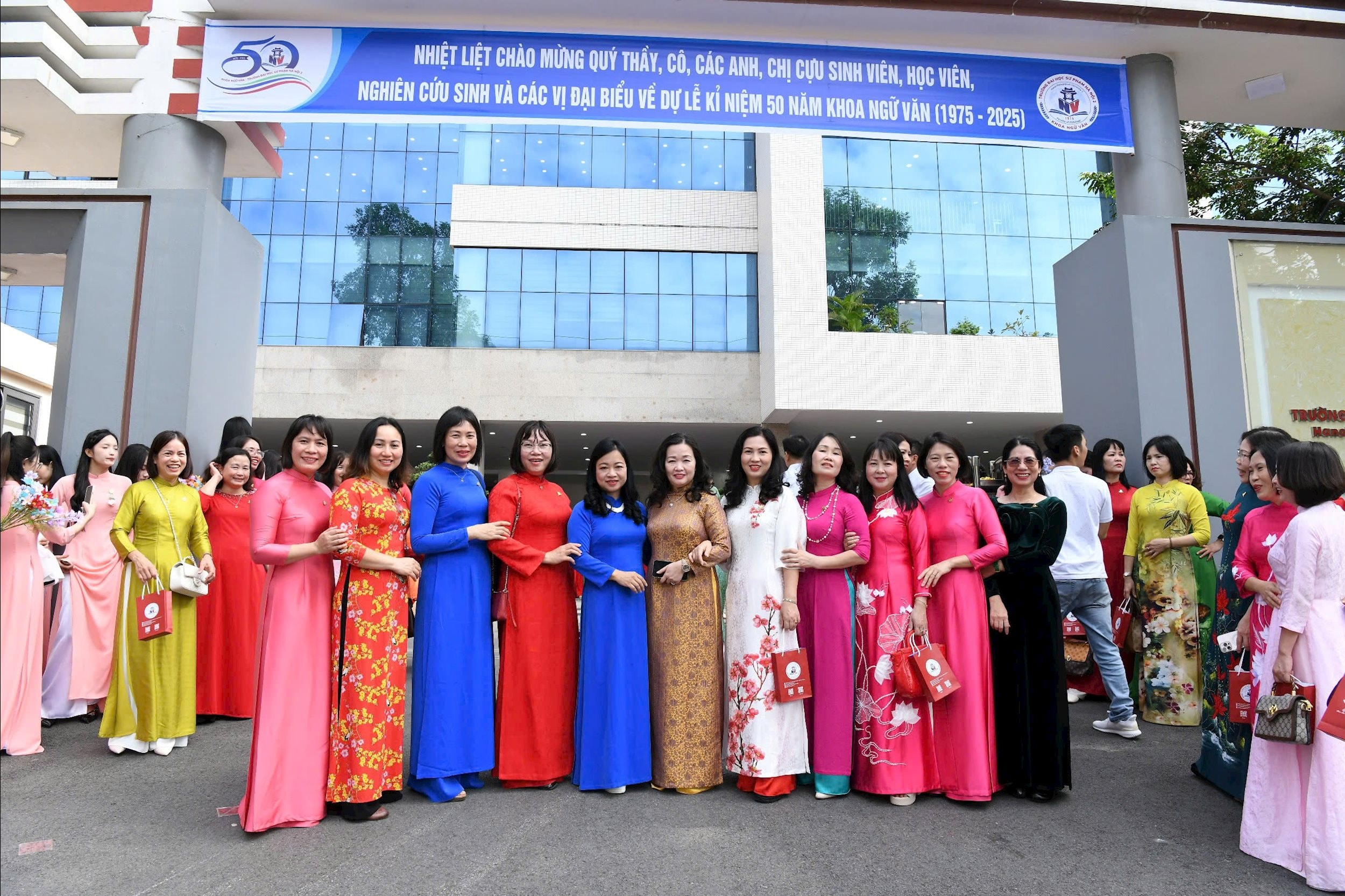 Cựu sinh viên Khoa Ngữ văn chụp lưu niệm tại buổi lễ
