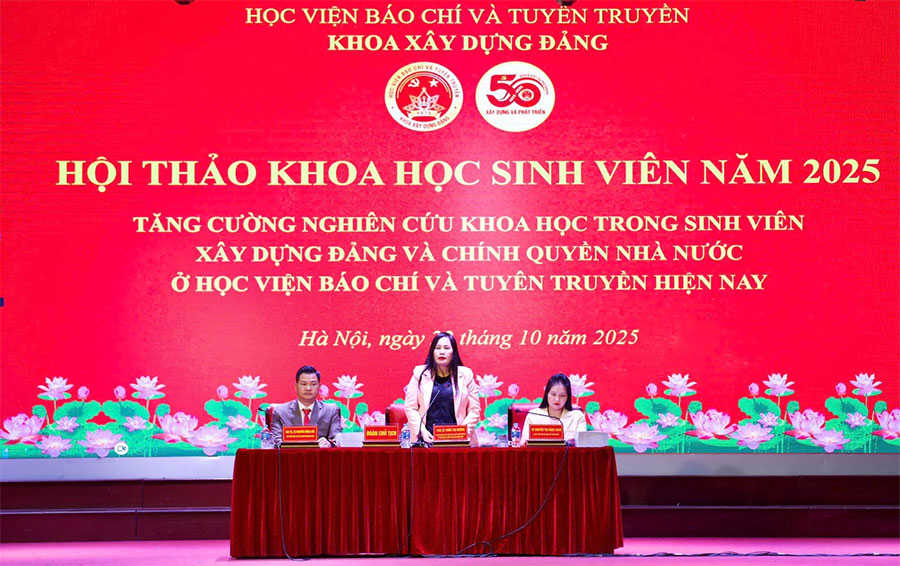 Quang cảnh Hội thảo khoa học sinh viên năm 2025 của Khoa Xây dựng Đảng.