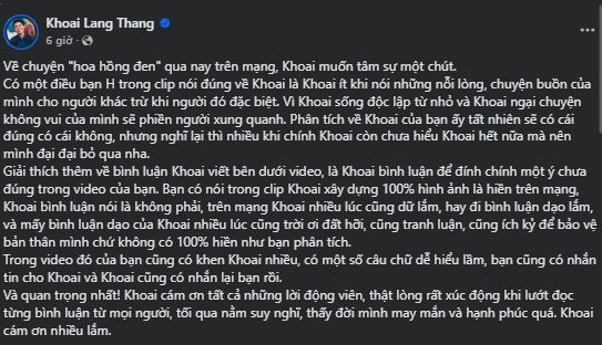"Về chuyện 'hoa hồng đen' qua nay trên mạng, Khoai muốn tâm sự một chút.