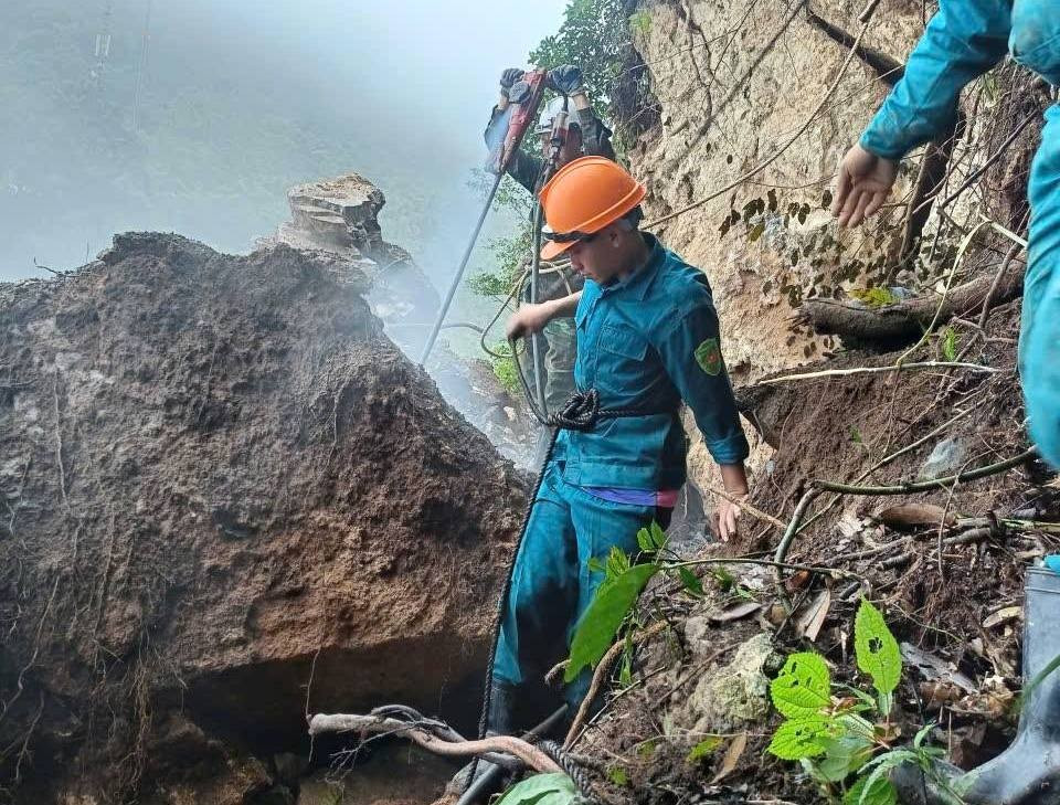 Trước tình hình trên, xã Mường Lống đã huy động hàng chục cán bộ của nhiều lực lượng chức năng và người dân tiến hành khắc phục các điểm sạt lở bằng cách bơm nước, cạy những tảng đá ở vách núi để mở đường.
