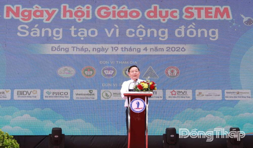 Phát biểu khai mạc Ngày hội STEM, PGS.TS Hồ Văn Thống, Hiệu trưởng Trường Đại học Đồng Tháp cho rằng, Ngày hội chính là dịp đặc biệt để các học sinh thể hiện sự sáng tạo, tư duy khoa học và tinh thần hợp tác thông qua các mô hình, sản phẩm, thí nghiệm và hoạt động trải nghiệm phong phú.