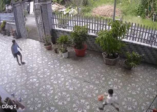 Không hiểu lực tác động thế nào, chiếc dép trên chân cậu đồng thời bay vút lên không trung với một quỹ đạo cực kỳ chính xác, trúng thẳng vào đầu người bố đang đứng đối diện. Phản ứng tức thời của ông bố là ôm lấy đầu, quay người lại với vẻ mặt khó tả. Trong khi đó, những thành viên khác trong gia đình ngồi xem bên cạnh không nhịn được cười.