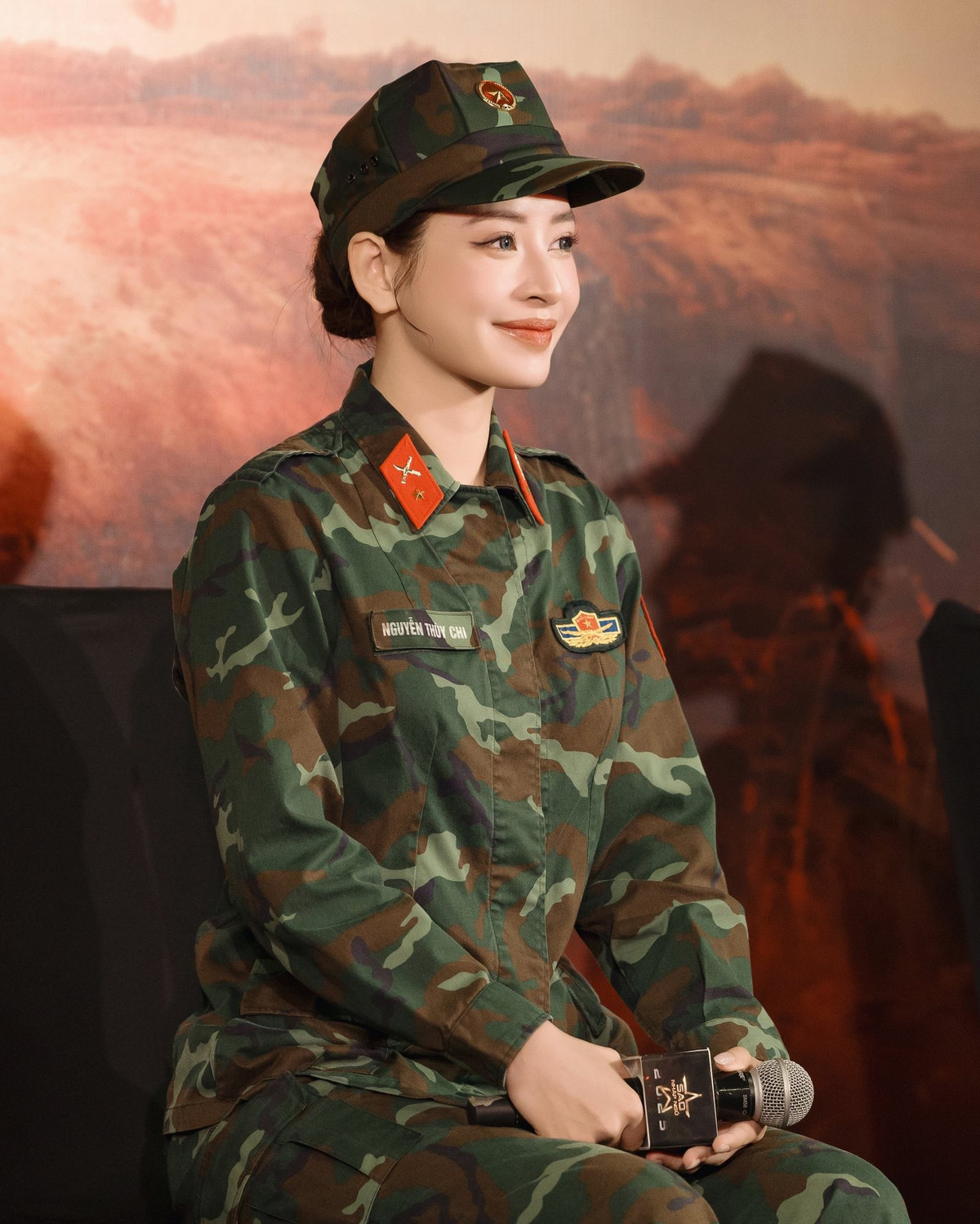 Tham gia Sao nhập ngũ 2025, Chi Pu là một trong số gương mặt nổi bật trong mùa năm nay. Cô được nhận xét lăn xả, hết mình với các nhiệm vụ trong chương trình.(Ảnh: FBNV)