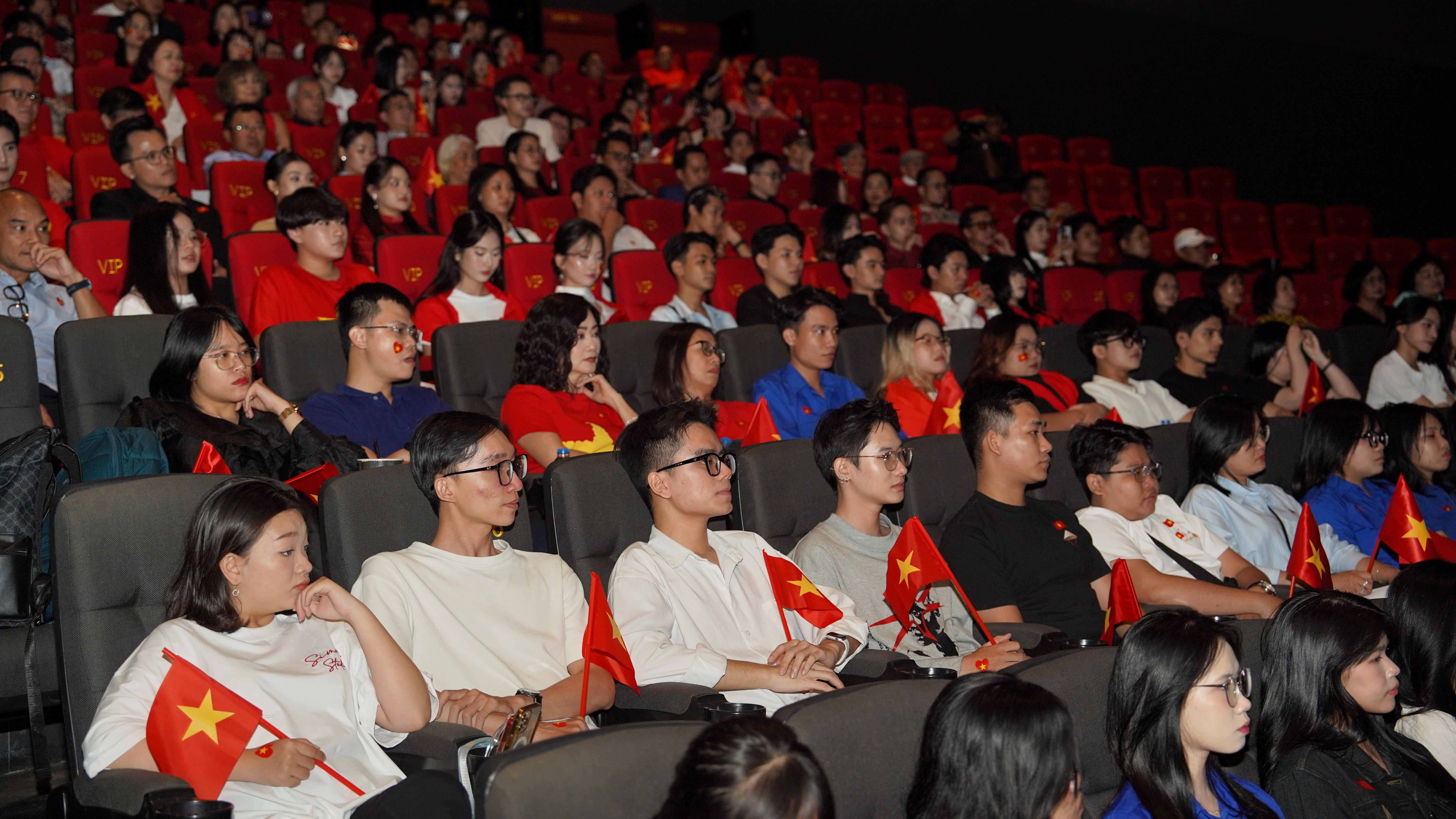 Dàn người đẹp diện áo dài trắng, đeo khăn rằn ở sự kiện. Các đại biểu, khách mời và khán giả tham dự buổi công chiếu phim cũng diện "dress code" là áo cờ đỏ sao vàng và cầm trên tay lá cờ nhỏ.