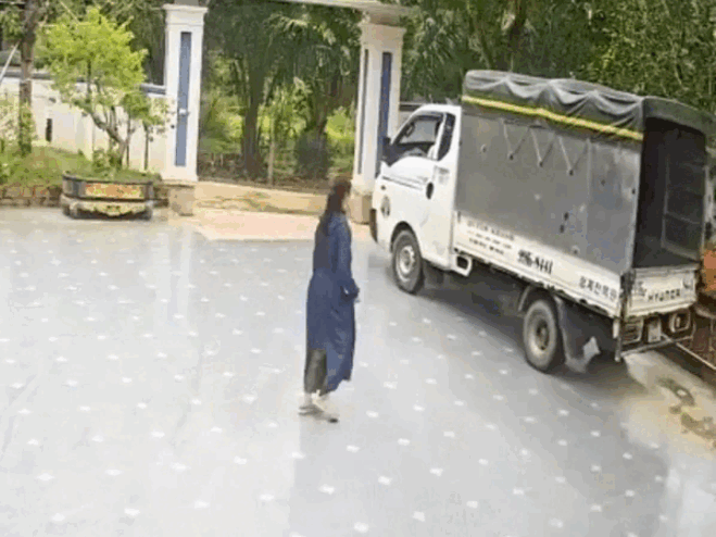 Theo diễn biến từ camera, cô gái từ trong nhà bước ra và tiến về phía chiếc xe tải đang di chuyển gần cổng. Mọi thứ diễn ra bình thường cho đến khi cô chuẩn bị bước lên thùng xe.