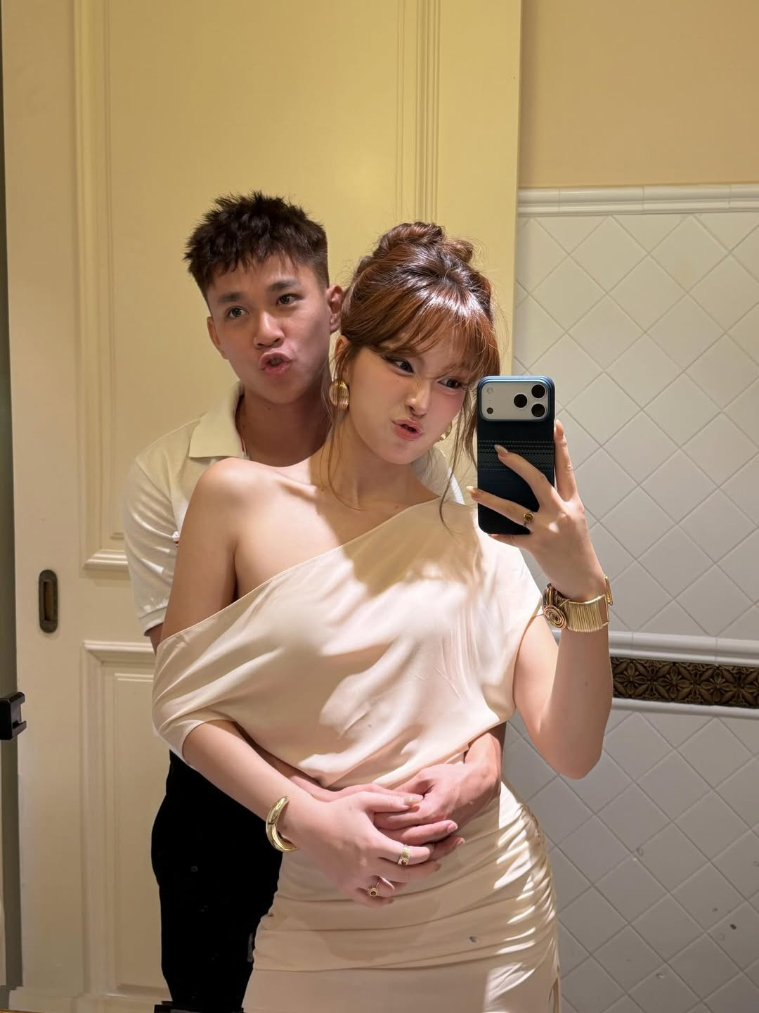 Cặp đôi này luôn khá kín tiếng trên mạng xã hội, và đây là một trong số ít lần Thụy Hân công khai khoảnh khắc thân mật có mặt nam tiền đạo.