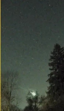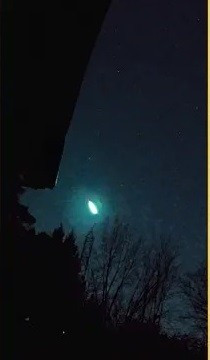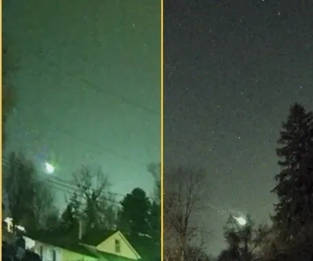 Hàng chục nhân chứng cũng báo cáo về một thiên thạch di chuyển nhanh trên bầu trời trước khi phát nổ thành một quả cầu lửa. Nhiều người cho rằng, thiên thạch đó nhiều khả năng là mảnh sao chổi, bốc cháy trong khí quyển, tạo ra ánh sáng xanh lục phía trên khu vực Ngũ Đại Hồ. Ảnh: Skippy the Magnificent Destroyer of Worlds Romancer of Women/ Bam B/ Jeremy Downard.