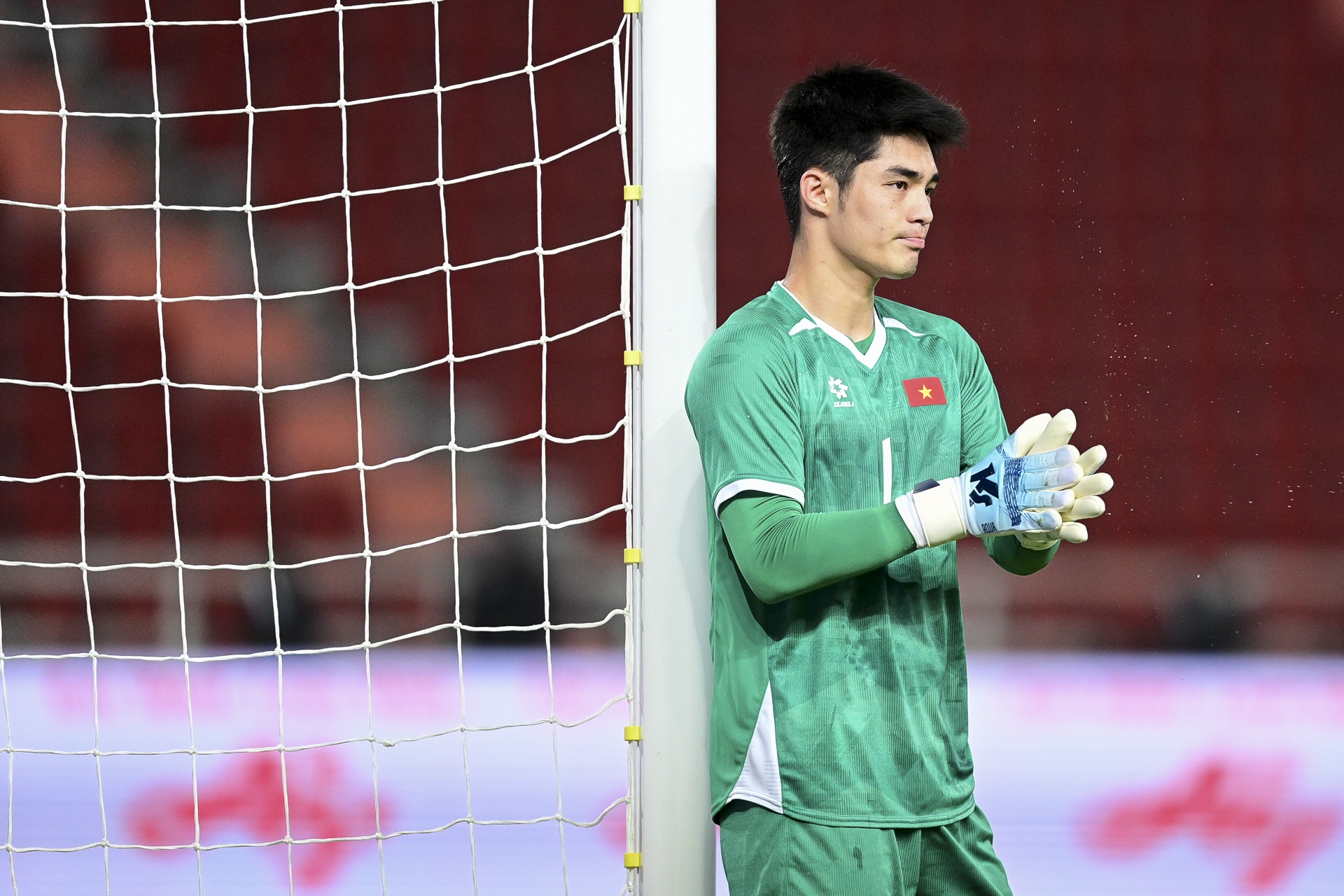 Trung Kiên cũng đã có những phút giây bất lực trong hiệp 1 khi các cầu thủ Thái Lan tấn công bài bản, sắc sảo trong các tình huống dứt điểm. Biểu cảm buồn bã của Trung Kiên sau bàn thắng của Seksan.