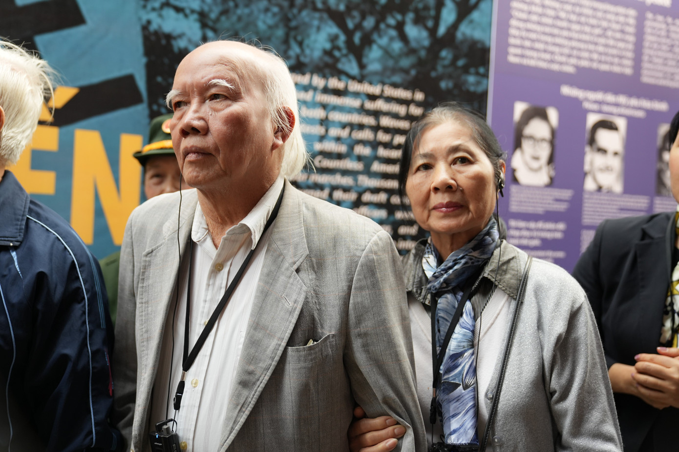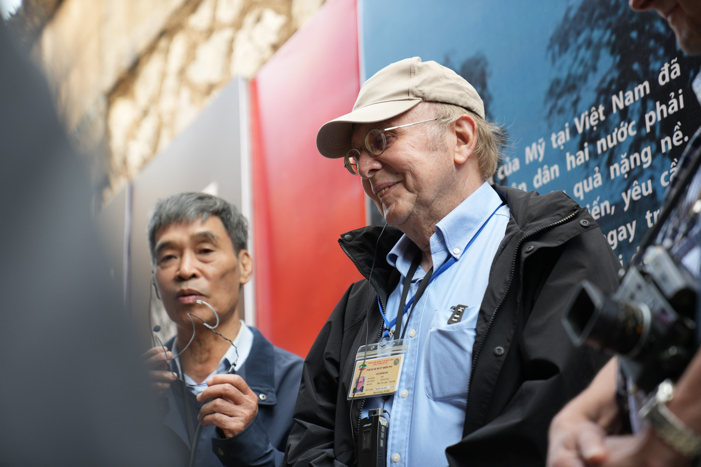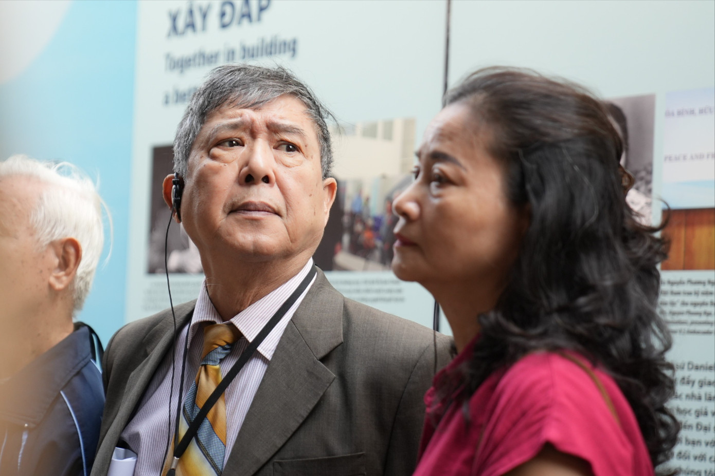 Trưng bày còn đón những vị khách quốc tế đặc biệt. Họ là người từng tham gia phong trào ủng hộ Việt Nam trong thời chiến. Ông Ad Spijkers (ảnh trái) - người Hà Lan cho biết từng xuống đường, tham gia phong trào ủng hộ, cung cấp viện trợ nhân đạo. "Sau chiến tranh, chúng tôi vẫn tiếp tục đồng hành cùng các dự án chống đói, chống rét và phát triển giáo dục cho Việt Nam. Tham dự trưng bày hôm nay khiến tôi thêm tin tưởng vào sự phát triển và vị thế quốc tế của Việt Nam”, ông Ad Spijkers chia sẻ.