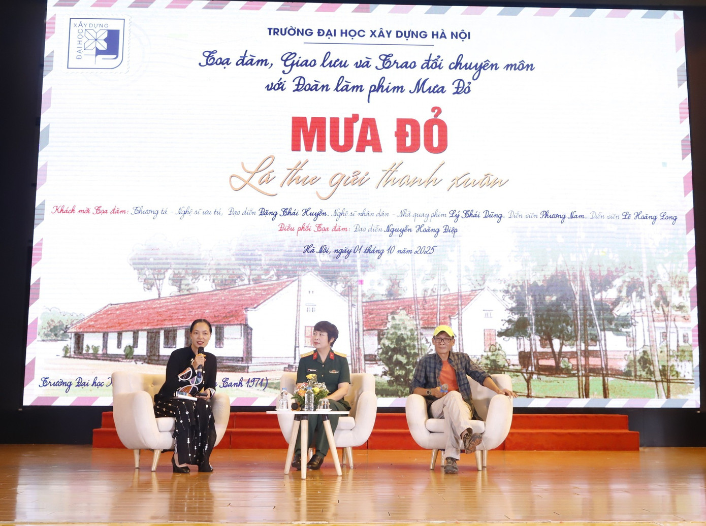 Tọa đàm Mưa đỏ - Lá thư gửi thanh xuân do Đại học Xây dựng Hà Nội tổ chức sáng ngày 1/10. Ảnh: BTC.