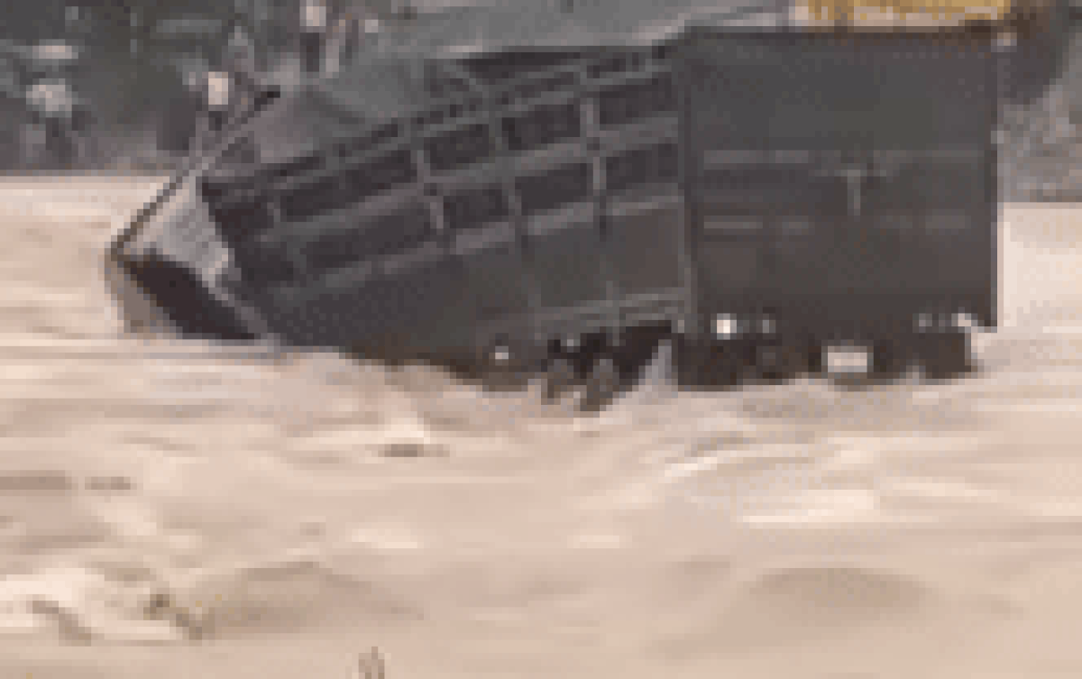 (Video ghi lại khoảnh khắc tài xế nhảy xuống dòng nước lũ)