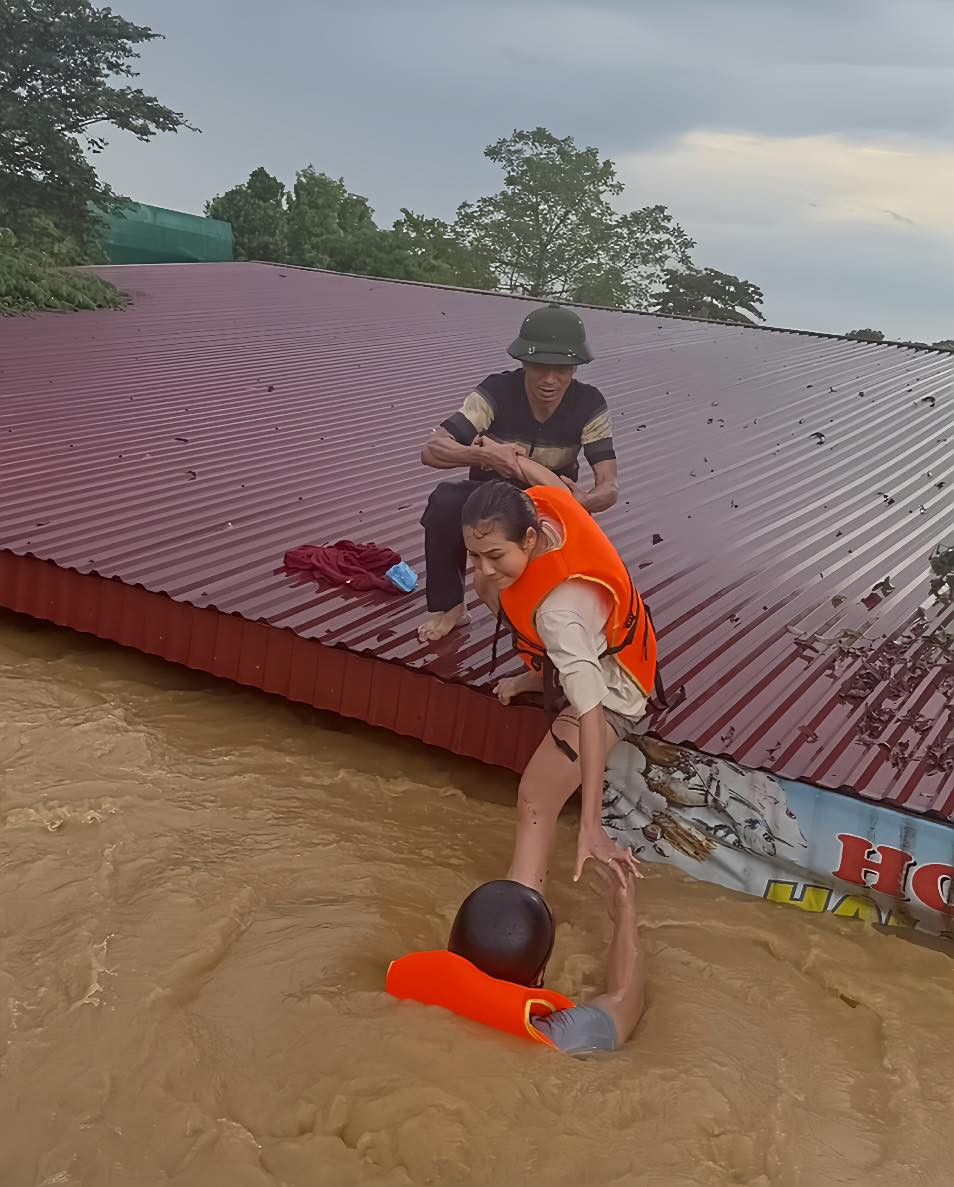 Do thuyền không thể tiếp cận vì vướng hệ thống dây điện, anh Tùng đã buộc dây thừng quanh người, lao xuống dòng nước xiết và bơi vào để đưa các nạn nhân ra ngoài an toàn.
