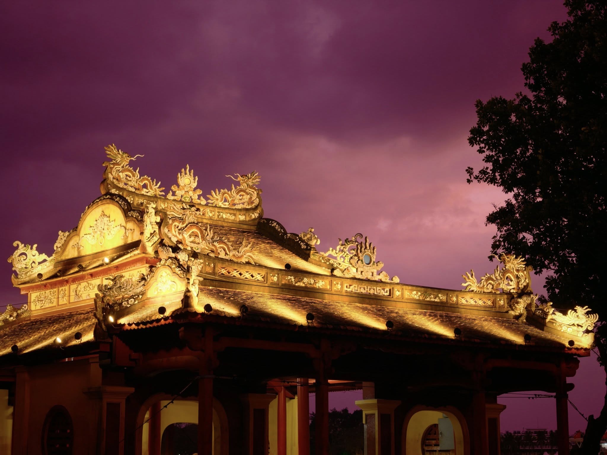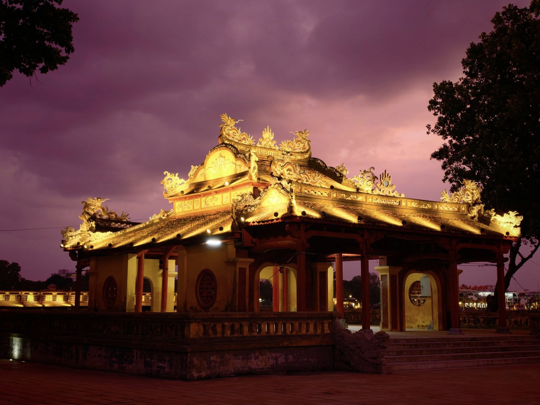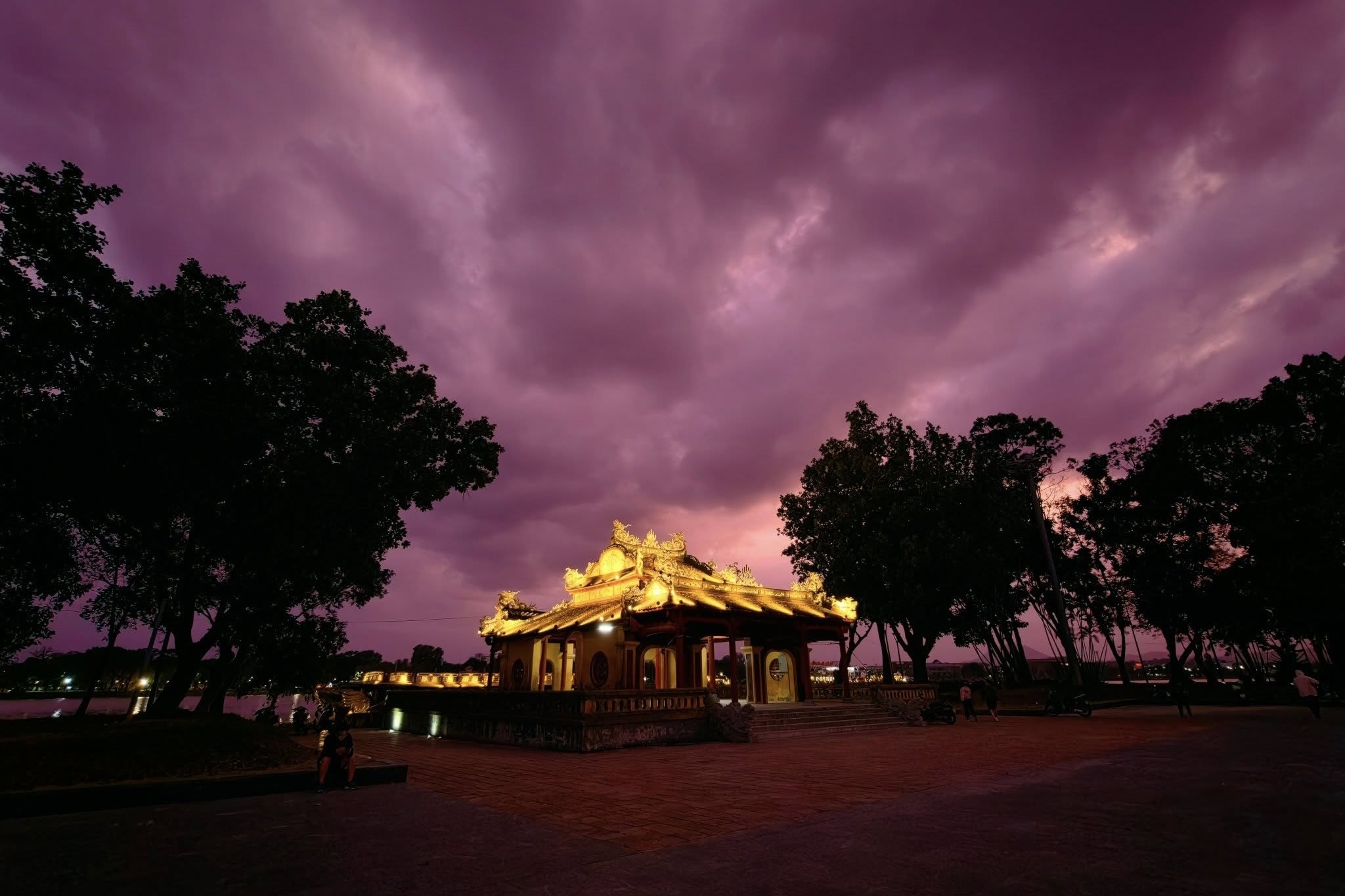Trong bức ảnh của anh Kelvin Long, bầu trời tím phía trên, bên dưới là Nghênh Lương Đình, một công trình kiến trúc thời Nguyễn, cho thấy lớp màu tím hòa vào kiến trúc cổ kính, tạo nên khung cảnh vừa lạ mắt vừa đặc trưng của thành phố di sản. Hình ảnh gây chú ý với người dân xứ Huế nói riêng và cả nước nói chung, thu hút hàng nghìn lượt tương tác khi loạt fanpage lớn, nhỏ chia sẻ lại.