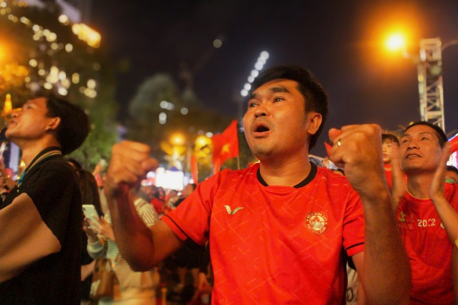 Sau khi để U22 Thái Lan dẫn trước hai bàn trong hiệp 1, U22 Việt Nam bước vào hiệp 2 với quyết tâm cao. Tại khu vực đường Lê Lợi (phường Bến Thành, TP HCM), đông đảo người hâm mộ tập trung theo dõi trận đấu trong không khí căng thẳng, dõi theo từng diễn biến trên sân.