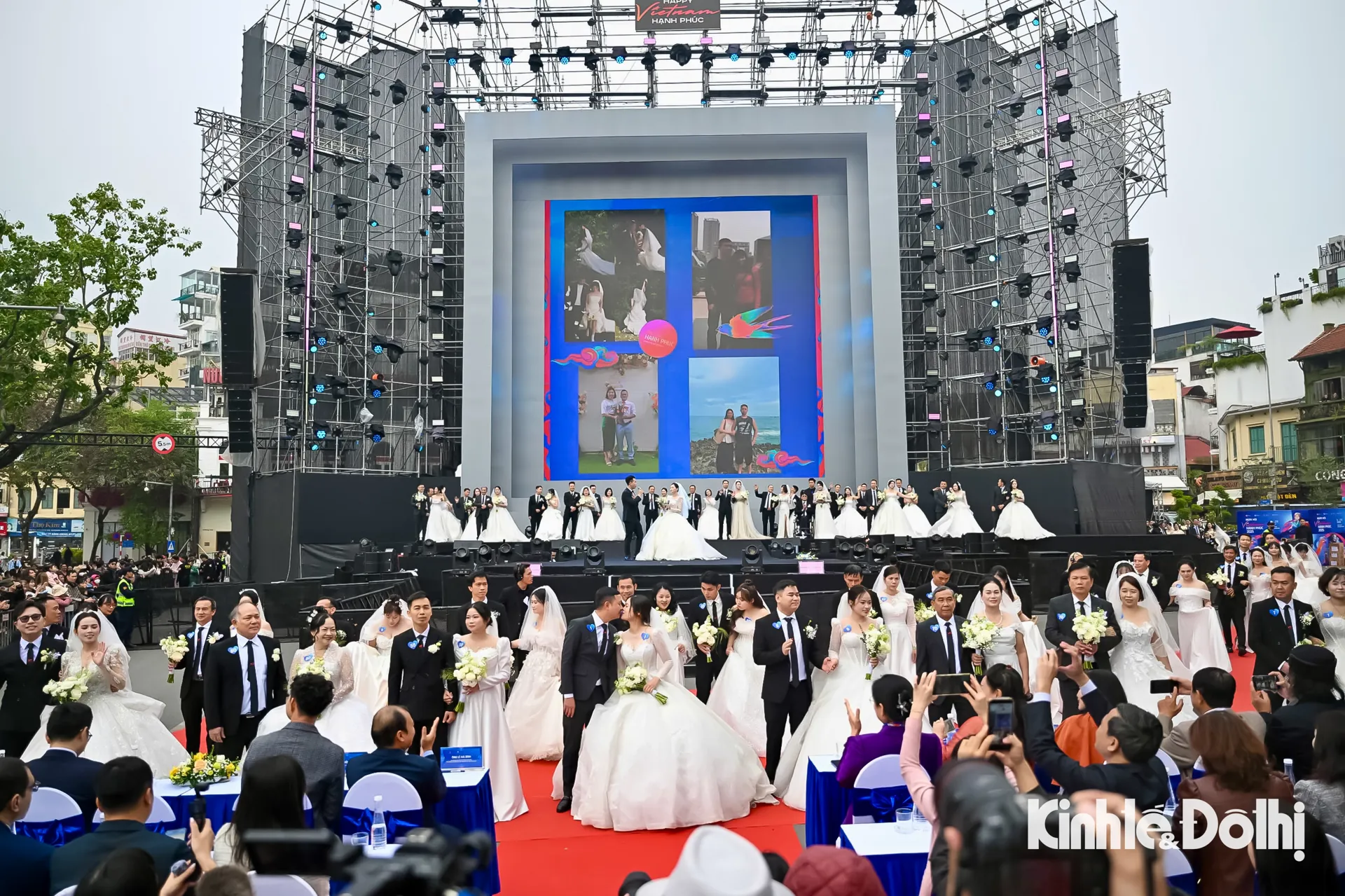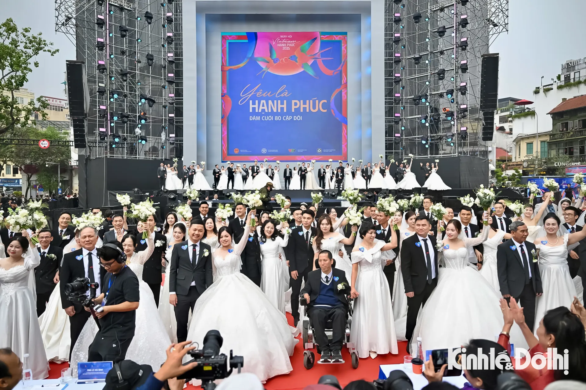 Nụ cười rạng rỡ, cái siết tay đầy tin tưởng và sự hiện diện của hàng nghìn người chứng kiến đã biến lễ cưới tập thể thành một khoảnh khắc khó quên ở trung tâm Thủ đô Hà Nội.