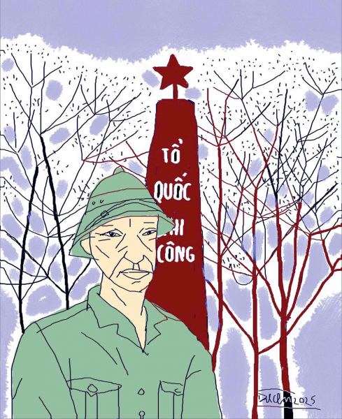 7. Con đường dẫn vào nghĩa trang những ngày cuối tháng Bảy rợp sắc cờ hoa. Những ngôi mộ cũng được quét dọn và có thêm bình hoa tươi thắm. Chiều đã muộn nhưng vẫn còn nhiều người đến viếng. Ngồi cùng với nhóm lính trẻ ở băng ghế đá dưới tán cây đại cổ thụ, ông Phùng, người cựu chiến binh đã hồi ức những câu chuyện về chiến tranh, về những người đồng đội, có người trẻ măng như các cháu bây giờ. Họ đã sẵn sàng xếp bút nghiên lên đường chiến đấu theo tiếng gọi của non sông...