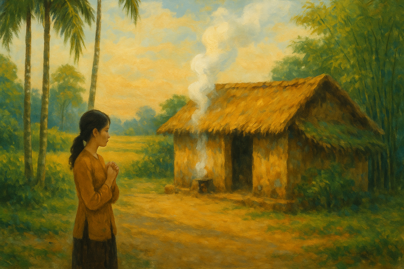 Nhìn khói bếp trời thu lam chiều với nhiều suy nghĩ mạnh mẽ tôi đã tự sống lại mình sau tất cả nỗi đau mà tôi gục ngã. Đó là điều đẹp nhất khi khói bếp trắng bay lên. Sự mạnh mẽ trong gió và mang một màu trắng tâm. Giống như tôi vậy một cô gái đang sống trên đường đời!