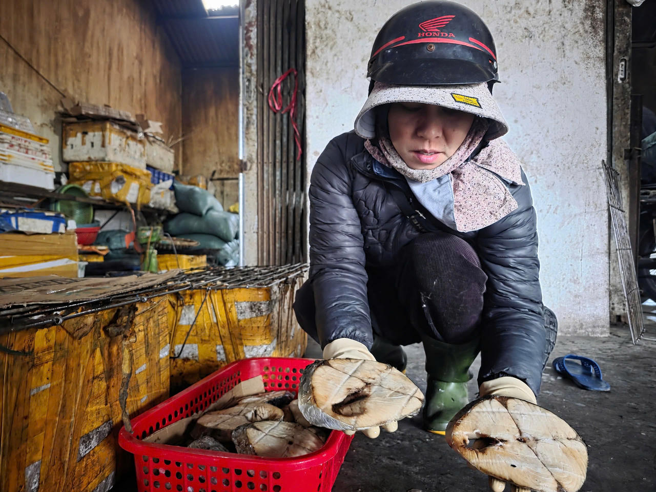 Tại xưởng nướng cá của gia đình bà Trần Thị Lài (thôn Long Hải, xã Lộc Hà), khói bếp đã nghi ngút từ khi trời còn chưa sáng. Bà Lài cho biết, nếu ngày thường mỗi ngày gia đình chỉ nướng khoảng 50–70kg cá thì suốt tuần qua, sản lượng đã tăng lên 150–200kg/ngày để đáp ứng đơn đặt hàng. Có những đêm cả nhà phải thay phiên nhau thức trắng canh lửa vì khách thúc giục.