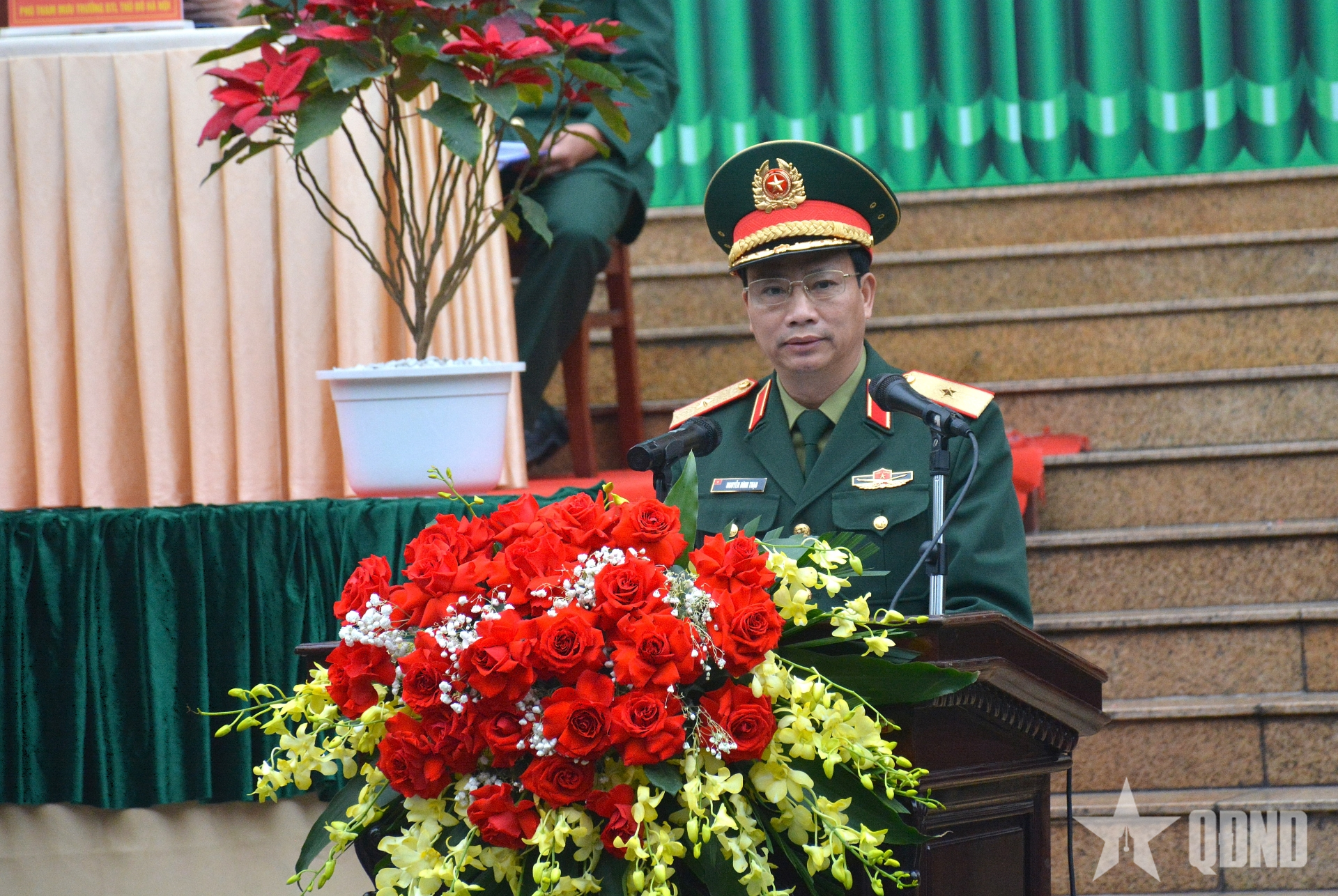 Thiếu tướng Nguyễn Đình Thạo, Tham mưu trưởng, Phó tư lệnh Bộ tư lệnh Thủ đô Hà Nội phát biểu tại buổi lễ.