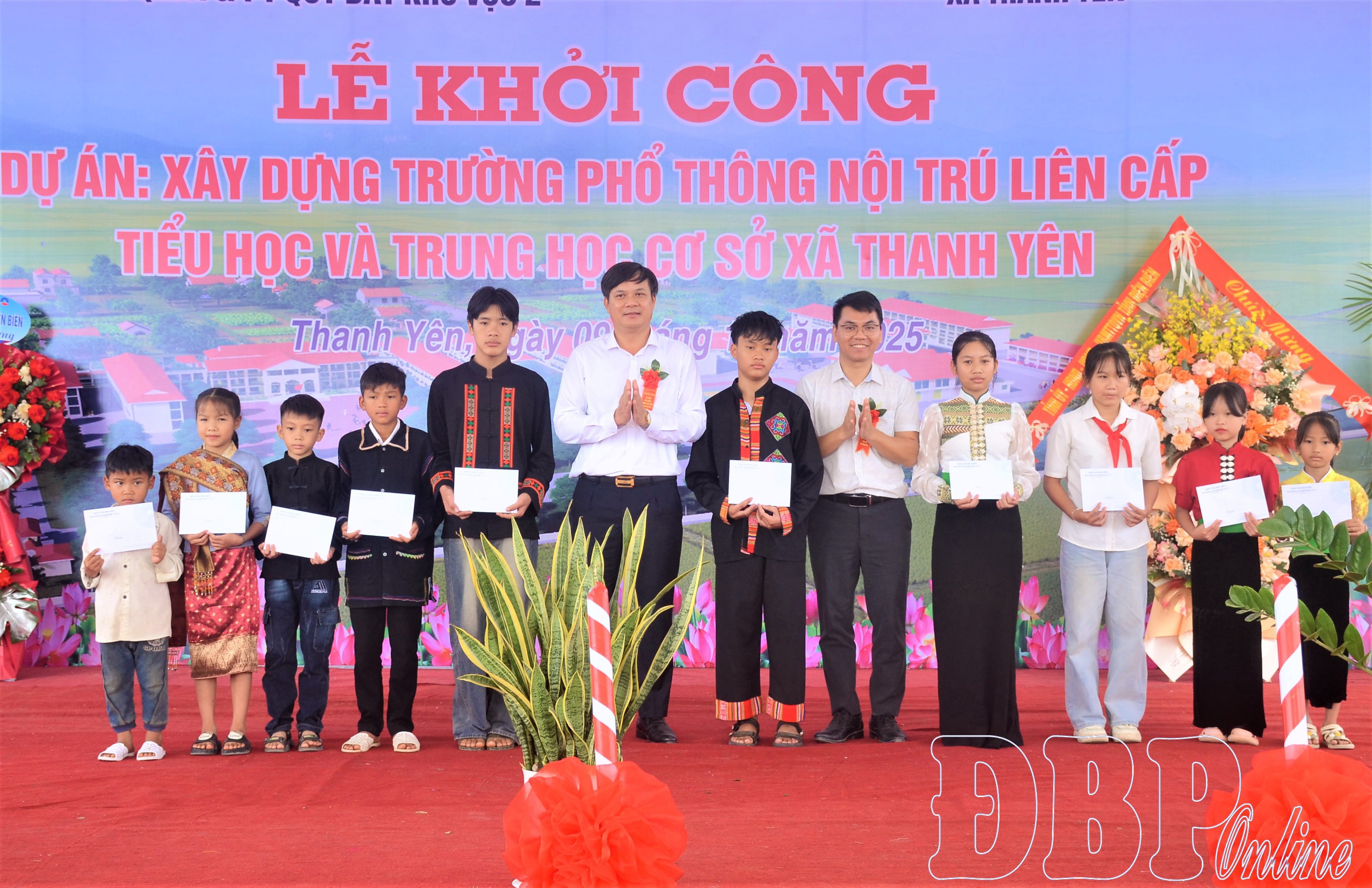 Tại xã Thanh Yên, Phó Chủ tịch UBND tỉnh Lò Văn Cương dự lễ khởi công Trường Phổ thông nội trú liên cấp Tiểu học và Trung học cơ sở xã Thanh Yên. Dự án có tổng mức đầu tư 200 tỷ đồng từ nguồn ngân sách Trung ương, xây dựng trên diện tích 6ha tại thôn Thanh Trường. Công trình gồm 30 phòng học, 12 phòng bộ môn, thư viện, phòng truyền thống, khu nội trú học sinh, 81 phòng công vụ giáo viên, nhà ăn, nhà bếp, nhà đa năng cùng các hạng mục phụ trợ. Dự án dự kiến hoàn thành vào tháng 8/2026, kịp phục vụ năm học 2026 - 2027. Nhân dịp này, tỉnh đã tặng quà 5 gia đình và 10 học sinh có hoàn cảnh khó khăn trên địa bàn.