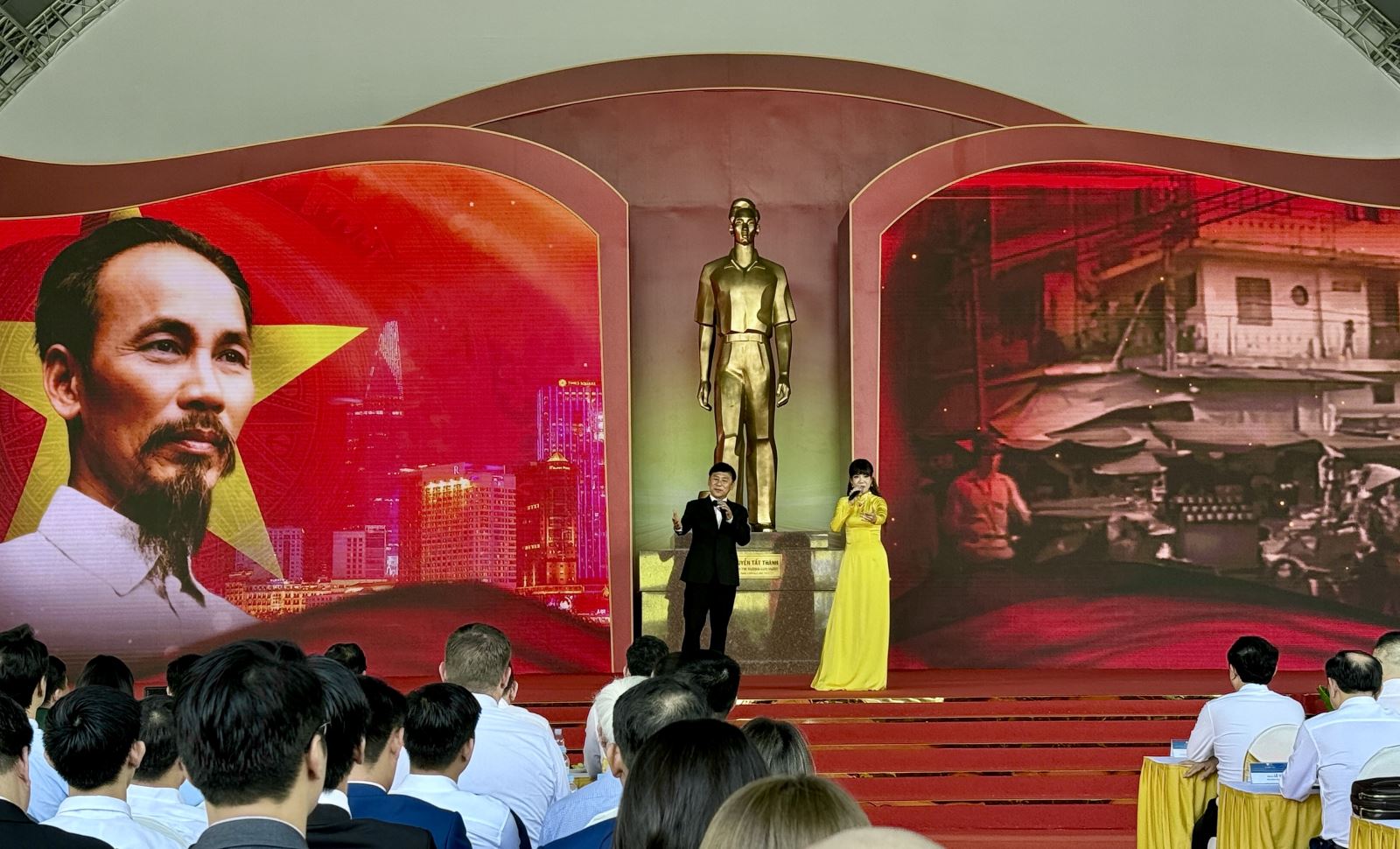 Tiết mục văn nghệ ca ngợi Chủ tịch Hồ Chí Minh do NSND Tạ Minh Tâm và các ca sĩ thể hiện.