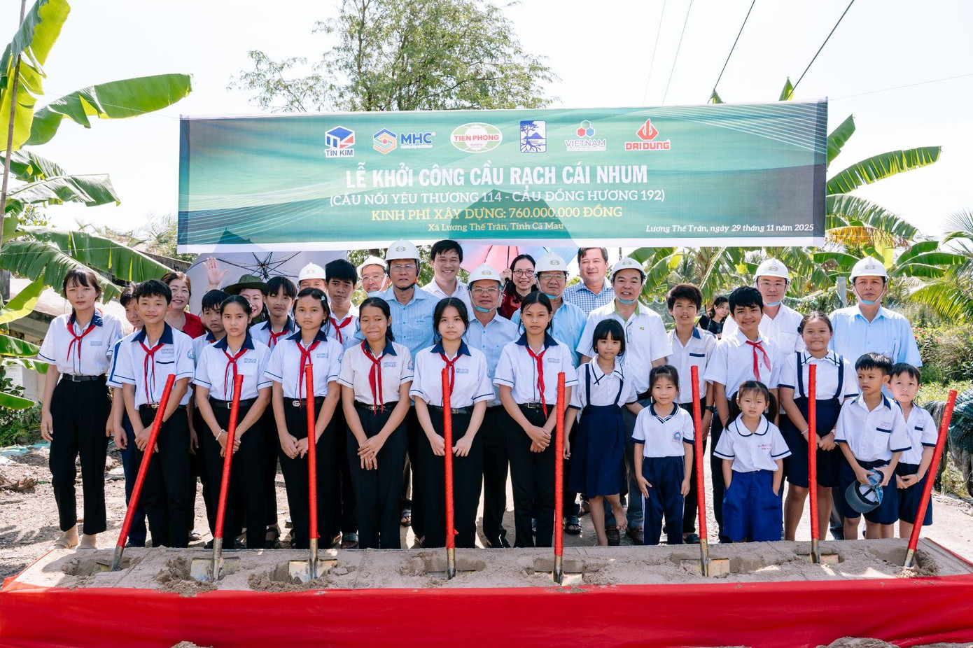 Lễ khởi công Cầu Rạch Cái Nhum - Cầu Nối Yêu Thương số 114 (Cầu Đồng hương 192) diễn ra thành công tốt đẹp trong niềm phấn khởi của bà con địa phương. Các đại biểu lãnh đạo các cấp chính quyền, doanh nghiệp và người dân cùng tham gia nghi thức động thổ, đánh dấu bước khởi đầu của công trình mới. Với sự quan tâm, chỉ đạo sát sao từ các cấp chính quyền, quyết tâm của đơn vị chủ trì, sự đồng hành của nhà tài trợ và ủng hộ của người dân, cây cầu kỳ vọng sớm hoàn thành, mang lại an toàn cho học sinh, thuận tiện giao thông và thúc đẩy phát triển kinh tế - xã hội.