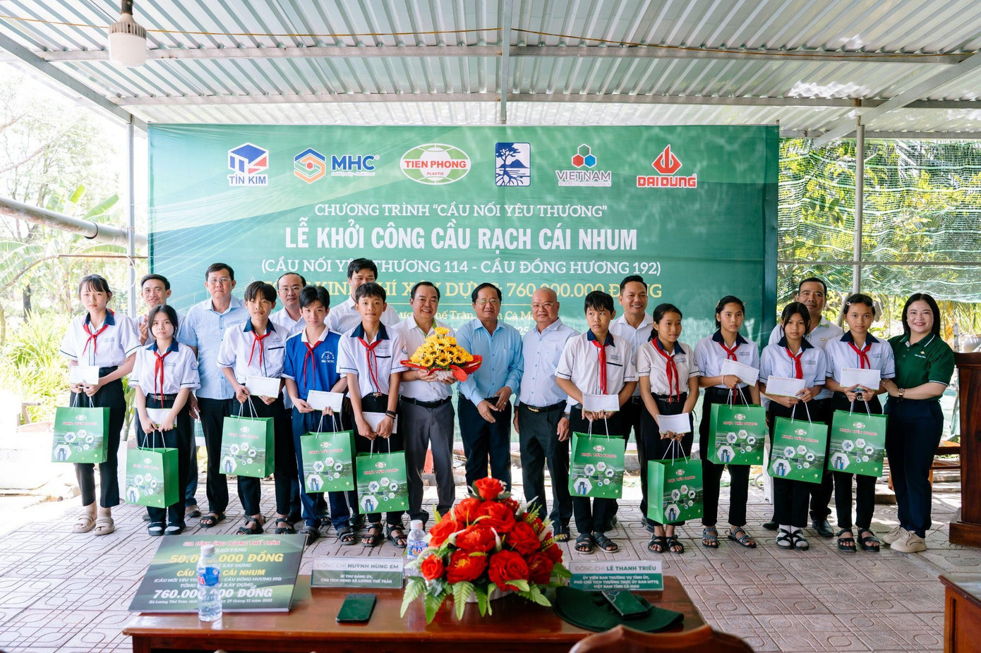 Chia sẻ về việc xây dựng Cầu nối yêu thương tại Cà Mau, đại diện phía nhà tài trợ, ông Nguyễn Ngọc Tâm - Phó TGĐ Công ty CP Nhựa Thiếu niên Tiền Phong phía Nam khẳng định: “Cầu Rạch Cái Nhum là cây cầu thứ 12 của chương trình Cầu nối yêu thương được xây dựng tại tỉnh Cà Mau. Đối với chúng tôi, mỗi cây cầu không chỉ là một công trình giao thông, mà còn là cam kết mang lại an toàn, kết nối cộng đồng và mở ra cơ hội phát triển cho người dân. Khi chứng kiến các em học sinh phải đi qua cây cầu cũ xuống cấp tiềm ẩn nhiều nguy hiểm, chúng tôi càng trăn trở và quyết tâm đồng hành cùng địa phương. Sự đồng lòng của chính quyền địa phương cùng các đơn vị tài trợ đã cho thấy tinh thần đoàn kết, cùng hướng đến mục tiêu vì cộng đồng.”