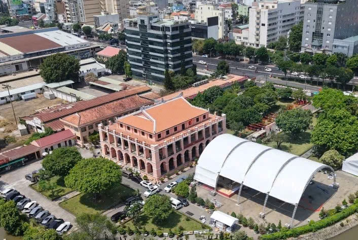 Bảo tàng Hồ Chí Minh tại khu Nhà Rồng – Khánh Hội nhìn từ trên cao.