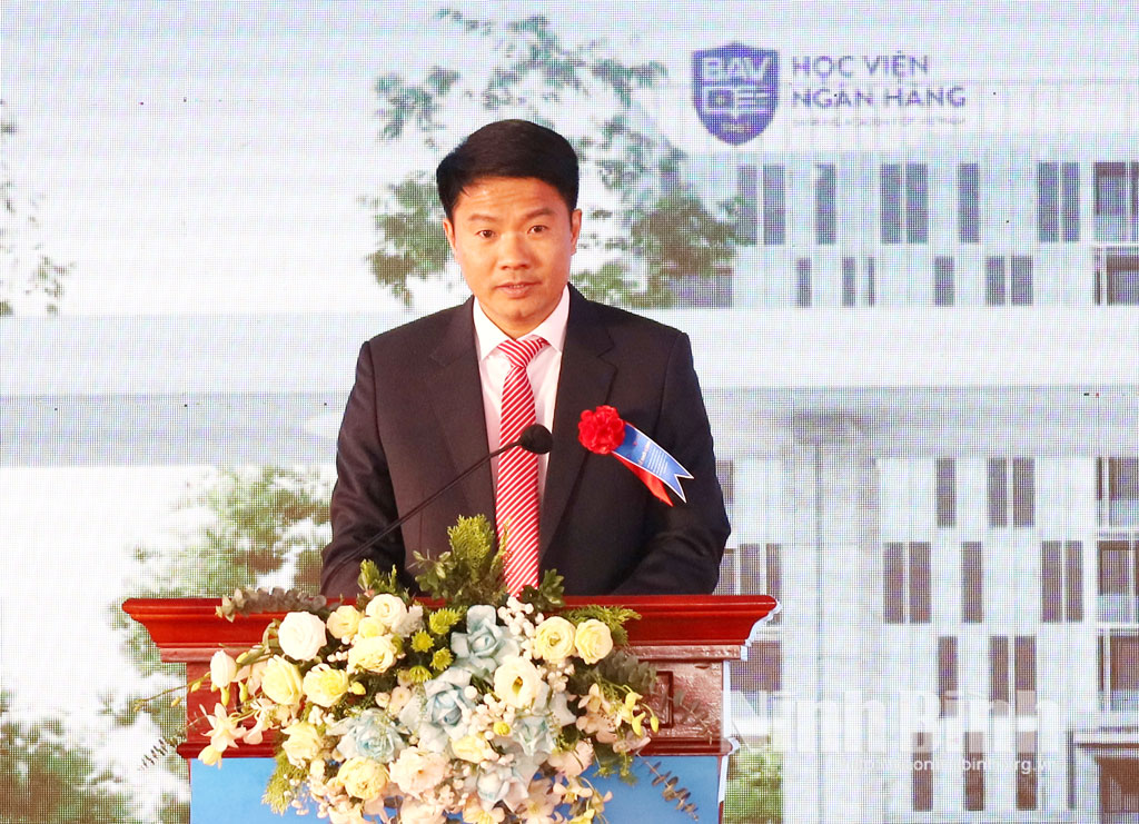 PGS, TS Bùi Hữu Toàn, Bí thư Đảng ủy, Chủ tịch Hội đồng Học viện Ngân hàng phát biểu tại lễ khởi công.