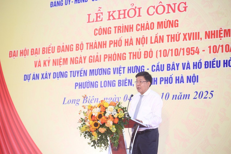 Phó Chủ tịch Ủy ban nhân dân thành phố nêu rõ, khu vực phía đông Hà Nội, nhất là phường Long Biên, với tốc độ đô thị hóa rất mạnh, đang chịu áp lực về hạ tầng đô thị, môi trường sinh thái và úng ngập cục bộ. Thành phố xác định, việc đầu tư các công trình hạ tầng kỹ thuật thoát nước, hồ điều hòa, trạm bơm là những dự án thiết yếu, phát triển đồng bộ hạ tầng đô thị, nhằm khắc phục triệt để tình trạng úng ngập, từng bước hoàn thiện hạ tầng kỹ thuật đô thị, nâng cao chất lượng môi trường sống…