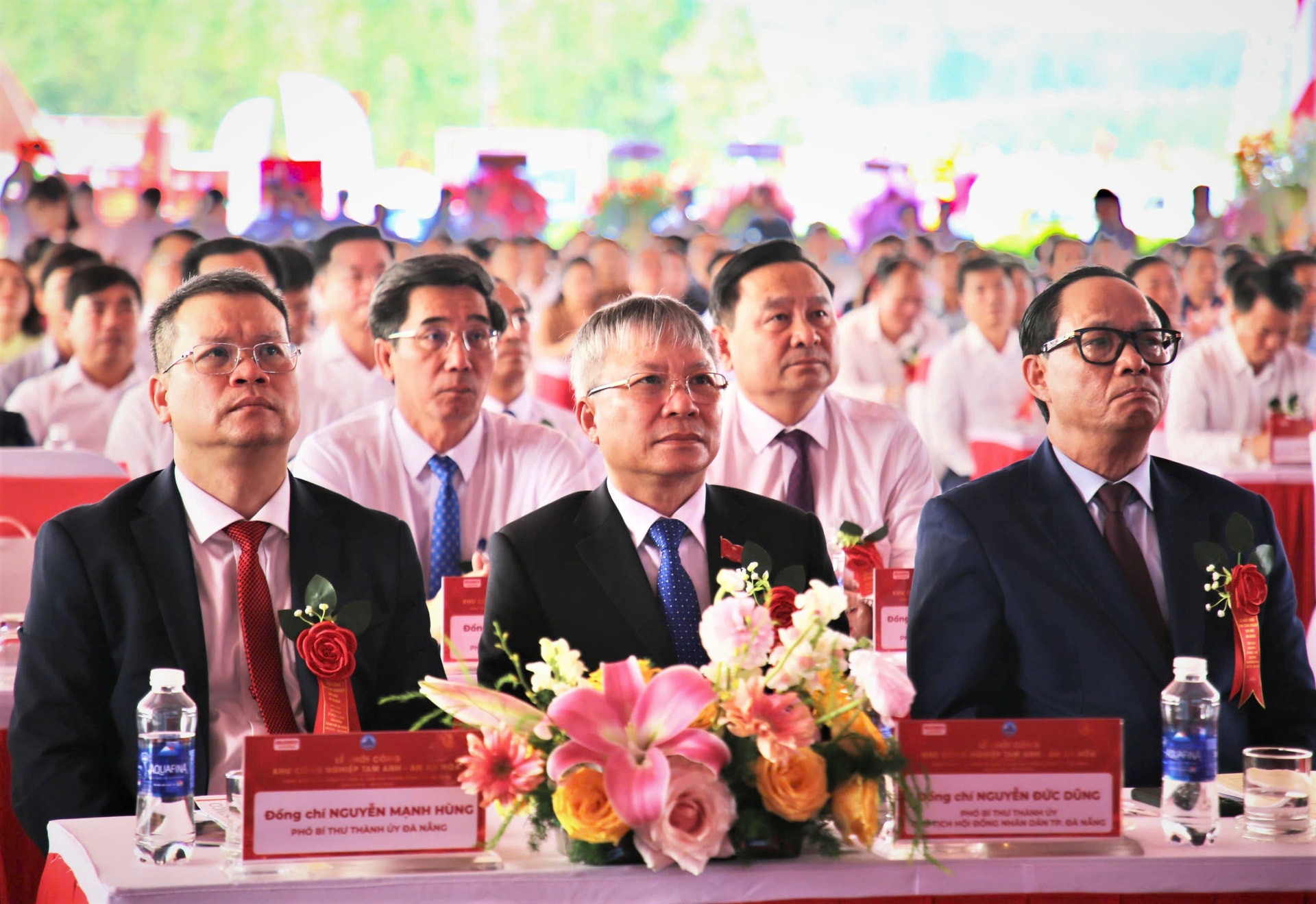 Các đại biểu Trung ương và thành phố dự lễ khởi công dự án Khu công nghiệp Tam Anh - An An Hòa. Ảnh: ALĂNG NGƯỚC