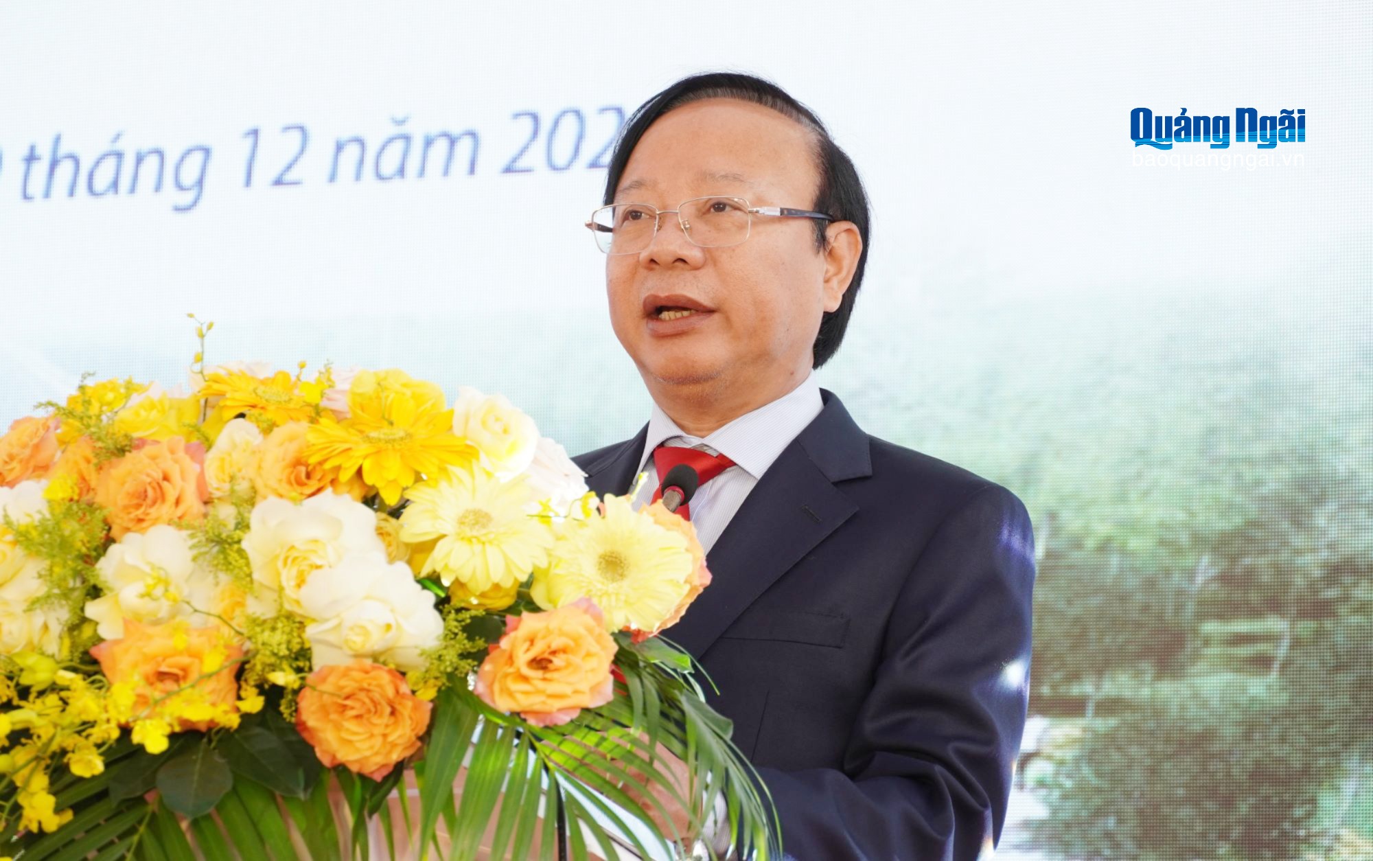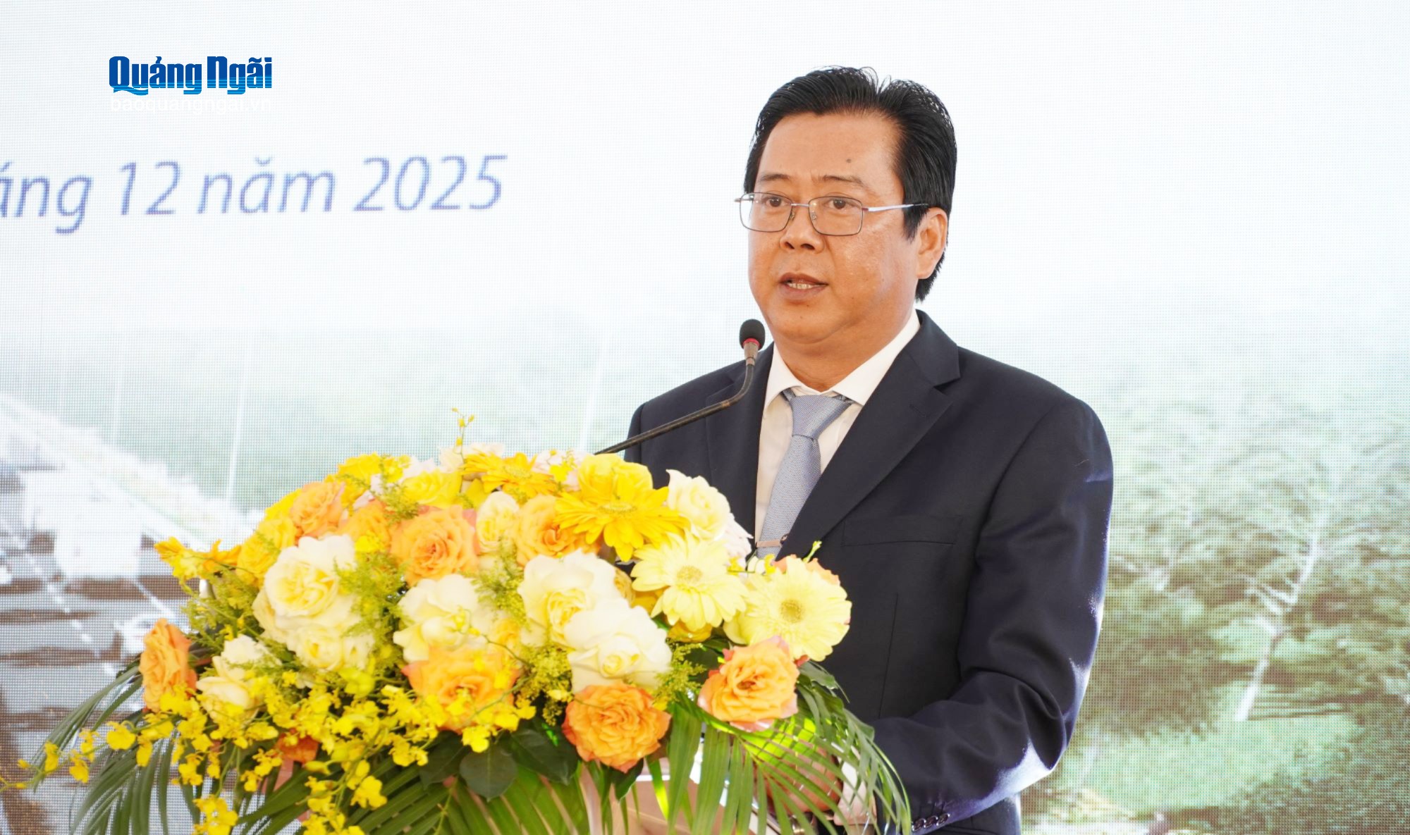 Ủy viên Ban Thường vụ Tỉnh ủy, Trưởng ban Quản lý KKT Dung Quất và các KCN Quảng Ngãi Lương Kim Sơn phát biểu tại lễ khởi công.