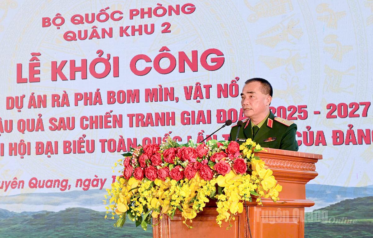 Phát biểu tại lễ khởi công, Thượng tướng Nguyễn Văn Gấu, Thứ trưởng Bộ Quốc phòng khẳng định: Dự án Rà phá bom mìn, vật nổ khắc phục hậu quả sau chiến tranh; tìm kiếm, quy tập hài cốt liệt sĩ, giai đoạn 2025 - 2027 tại Quân khu 2 có ý nghĩa đặc biệt quan trọng, được Chính phủ lựa chọn tổ chức lễ khởi công cùng với các công trình, dự án trọng điểm quốc gia trên cả nước để thiết thực chào mừng Đại hội đại biểu toàn quốc lần thứ XIV của Đảng.