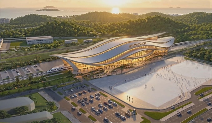 Phối cảnh ga Hạ Long của tuyến đường sắt cao tốc Hà Nội - Quảng Ninh. (Ảnh: Vinspeed).