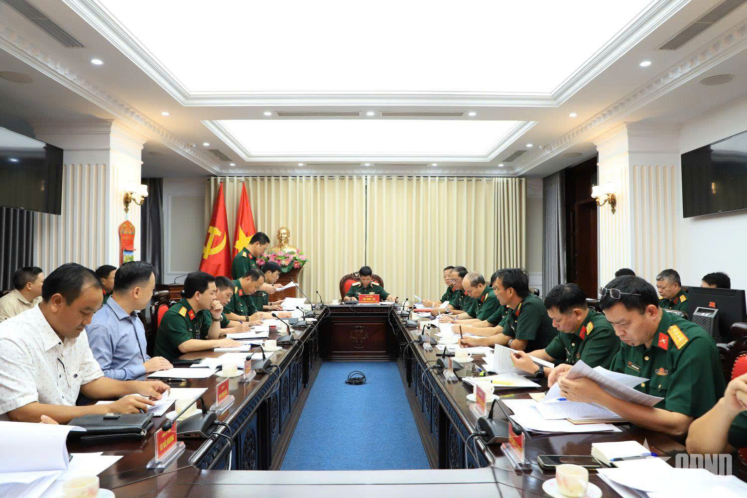 Thiếu tướng Hà Như Lợi, Phó chủ nhiệm Tổng cục Hậu cần-Kỹ thuật, Phó trưởng ban Thường trực Ban Chỉ đạo Chính sách nhà ở Bộ Quốc phòng chủ trì hội nghị.