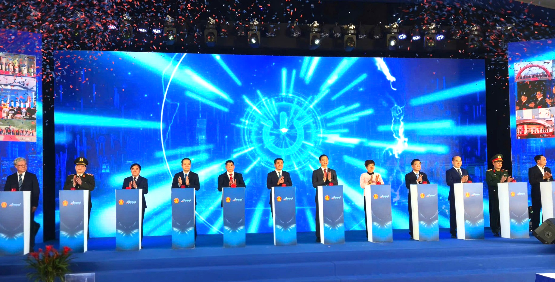 Bộ trưởng Bộ Công thương Nguyễn Hồng Diên và lãnh đạo tỉnh bấm nút khởi công dự án.