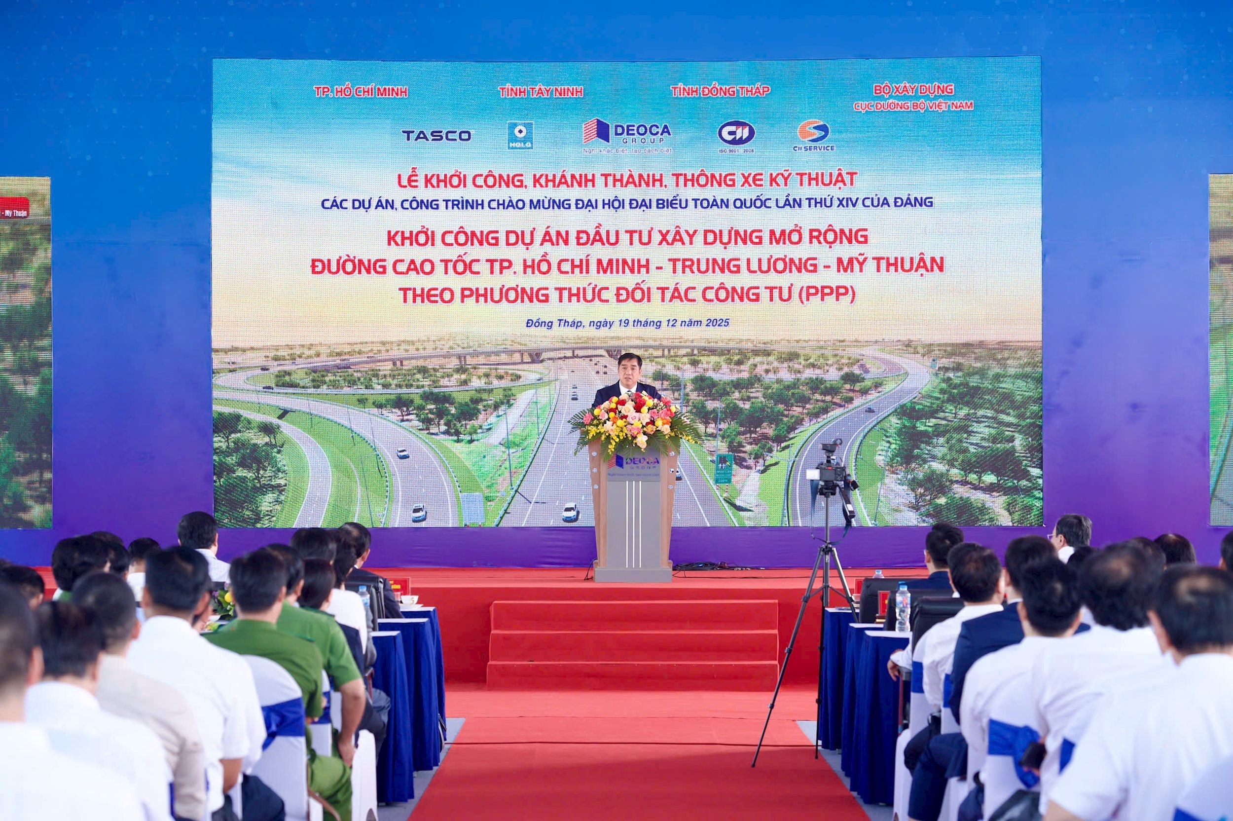 Ngày 19/12, tại tỉnh Đồng Tháp, Bộ Xây dựng phối hợp cùng Liên danh nhà đầu tư tổ chức Lễ khởi công Dự án mở rộng đường cao tốc TP. Hồ Chí Minh - Trung Lương - Mỹ Thuận.