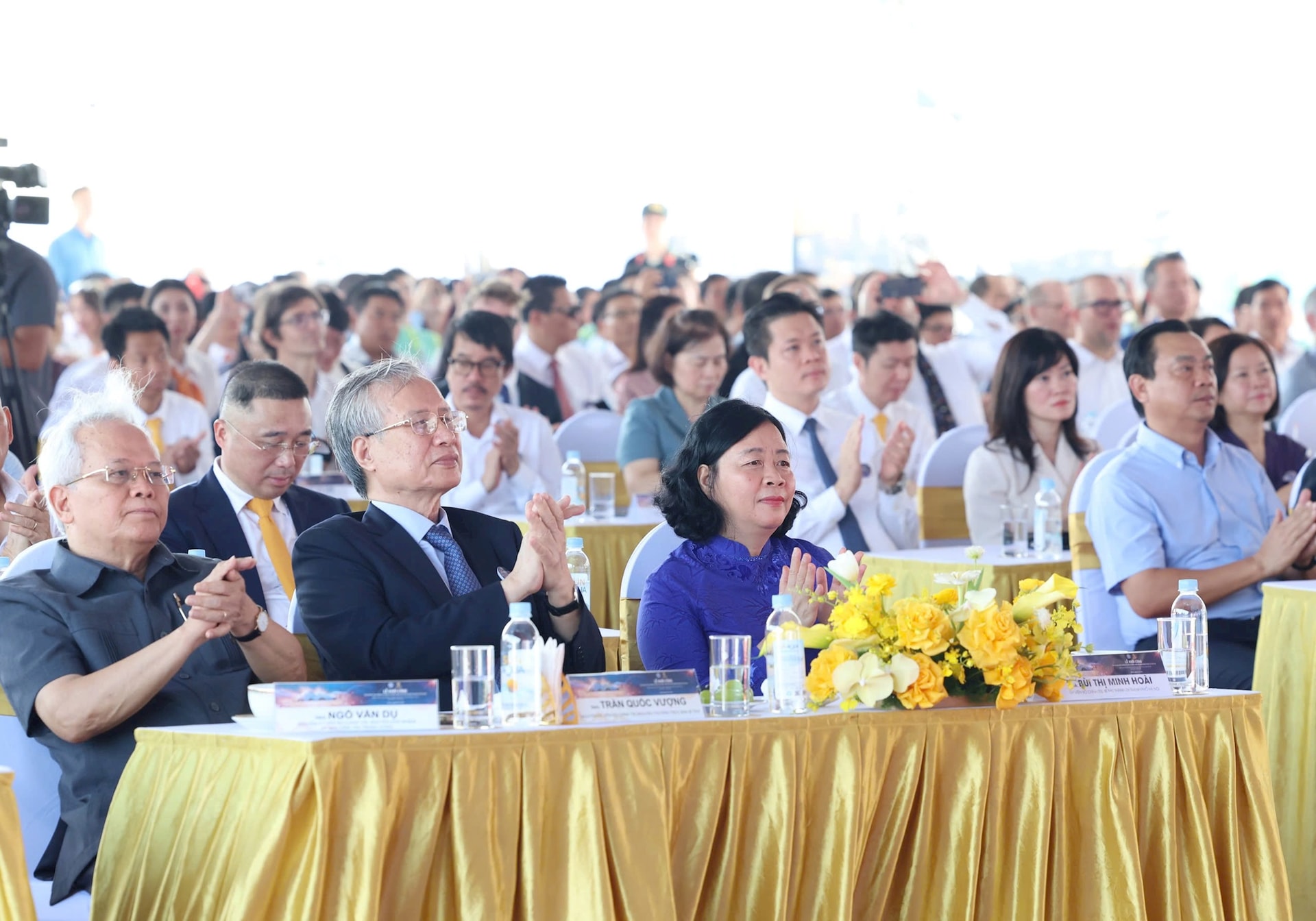 Bí thư Thành ủy Hà Nội Bùi Thị Minh Hoài cùng các đại biểu tham dự lễ khởi công. Ảnh: Viết Thành