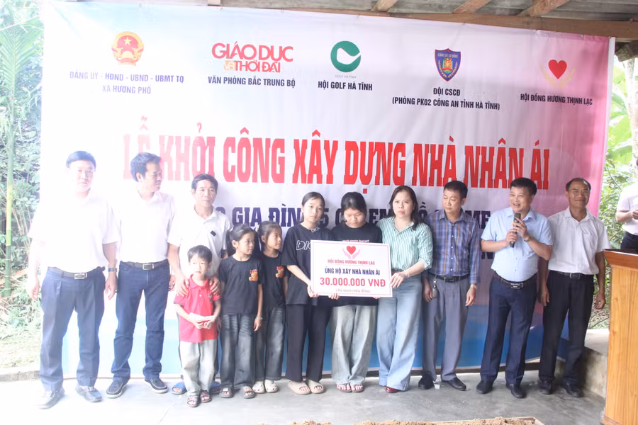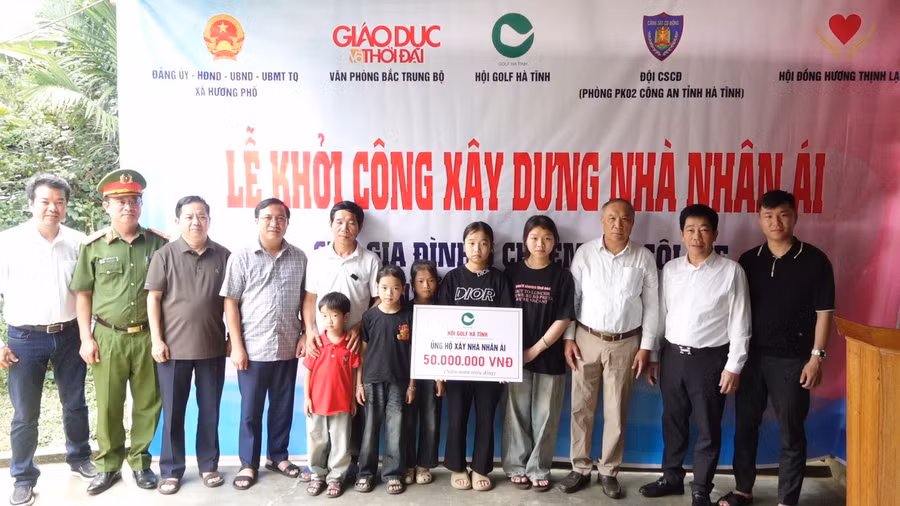 Tại buổi lễ, đại diện các tổ chức như Hội Golf Hà Tĩnh, Hội đồng hương Thịnh Lạc, phòng Cảnh sát Cơ động Công an tỉnh Hà Tĩnh, CLB Pickleball Eagle cùng nhiều mạnh thường quân đã trao biểu trưng hỗ trợ kinh phí xây dựng nhà, với tổng số tiền hơn 120 triệu đồng. Những phần quà không chỉ mang giá trị vật chất mà còn thể hiện tinh thần tương thân tương ái, trách nhiệm cộng đồng sâu sắc.