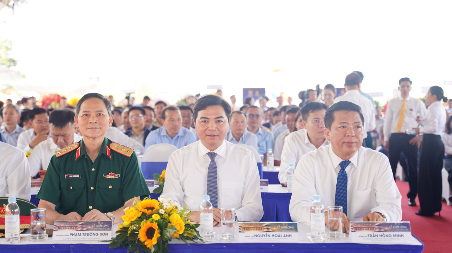 Từ trái sang phải: Bộ trưởng Bộ Xây dựng Trần Hồng Minh; Chủ tịch UBND tỉnh Thanh Hóa Nguyễn Hoài Anh và Thượng tướng Phạm Trường Sơn, Phó Tổng Tham mưu Trưởng QĐND Việt Nam tham dự Lễ khởi công.
