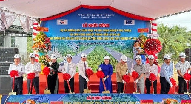 UBND tỉnh Vĩnh Long vừa tổ chức lễ khởi công dự án đường Bắc – Nam phục vụ Khu công nghiệp Phú Thuận và Cụm công nghiệp Phong Nẫm (xã Phong Nẫm). Đây là một trong những công trình trọng điểm chào mừng Đại hội đại biểu Đảng bộ tỉnh Vĩnh Long lần thứ I, nhiệm kỳ 2025 – 2030.