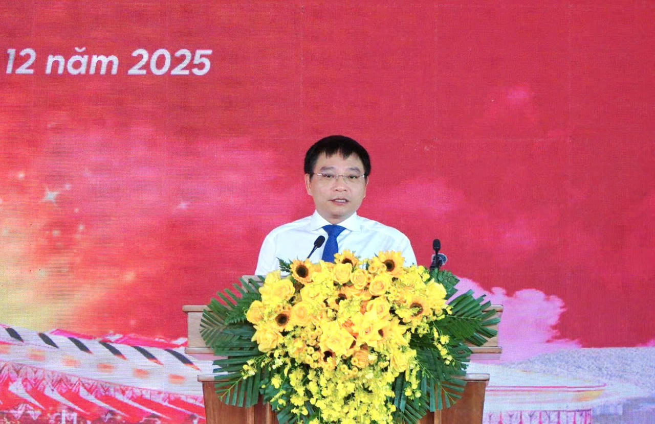 Bộ trưởng Bộ Tài chính Nguyễn Văn Thắng phát biểu tại lễ khởi công, khánh thành sáng 19/12 (Ảnh: Khánh Thùy).