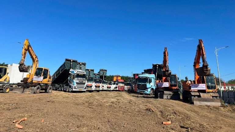 Chủ đầu tư huy động phương tiện đẩy nhanh tiến độ dự án.