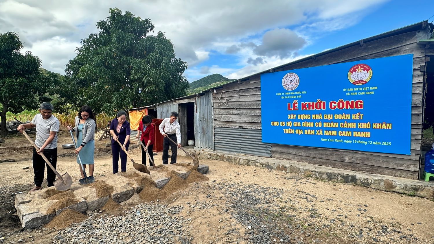 Ngày 19-12, Ủy ban MTTQ Việt Nam xã Nam Cam Ranh phối hợp với Công ty TNHH Nhà nước Một thành viên Yến sào Khánh Hòa tổ chức lễ khởi công xây dựng 5 căn nhà Đại đoàn kết cho các hộ gia đình có hoàn cảnh khó khăn trên địa bàn xã.