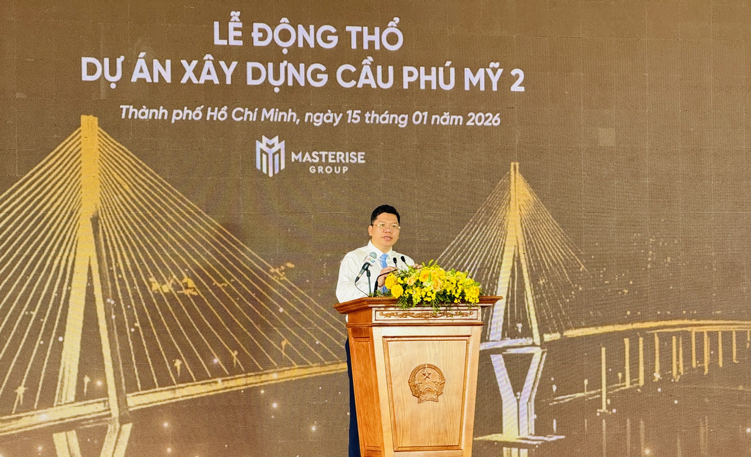 Sáng 15-1, UBND TPHCM phối hợp cùng Tập đoàn Masterise tổ chức lễ động thổ Dự án đầu tư xây dựng cầu Phú Mỹ 2, thuộc chuỗi các dự án hạ tầng - giao thông chào mừng Đại hội đại biểu toàn quốc lần thứ XIV của Đảng.