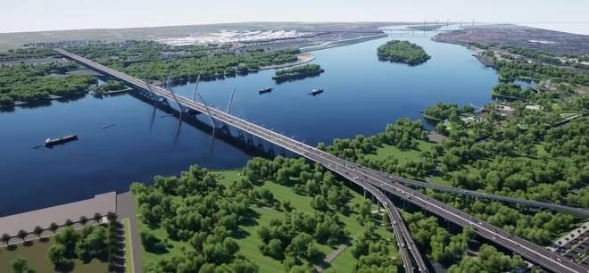 Phương án kết cấu cầu chính là cầu dây văng. Tổng chiều dài cầu và đường hai đầu cầu là 5,226 km, trong đó chiều dài đường dẫn 1.321m, chiều dài cầu 3.904,6m, bề rộng cầu bảo đảm 8 làn xe (6 làn xe cơ giới và 2 làn thô sơ). Tổng mức đầu tư dự án là hơn 7.300 tỷ đồng từ nguồn vốn ngân sách thành phố, dự kiến hoàn thành trong năm 2027.